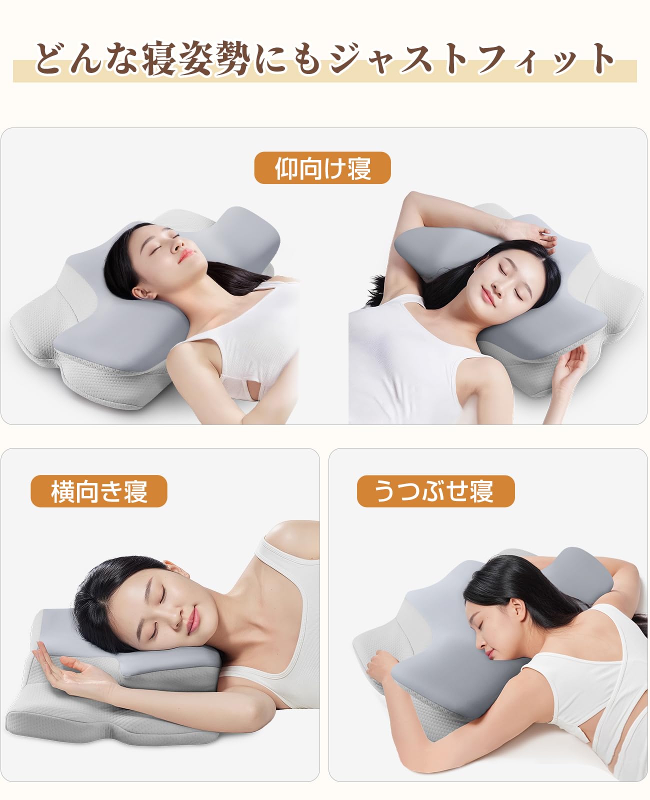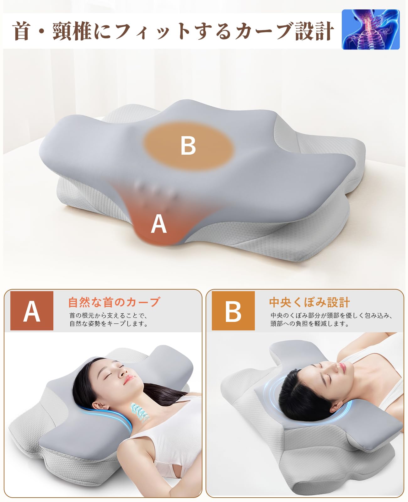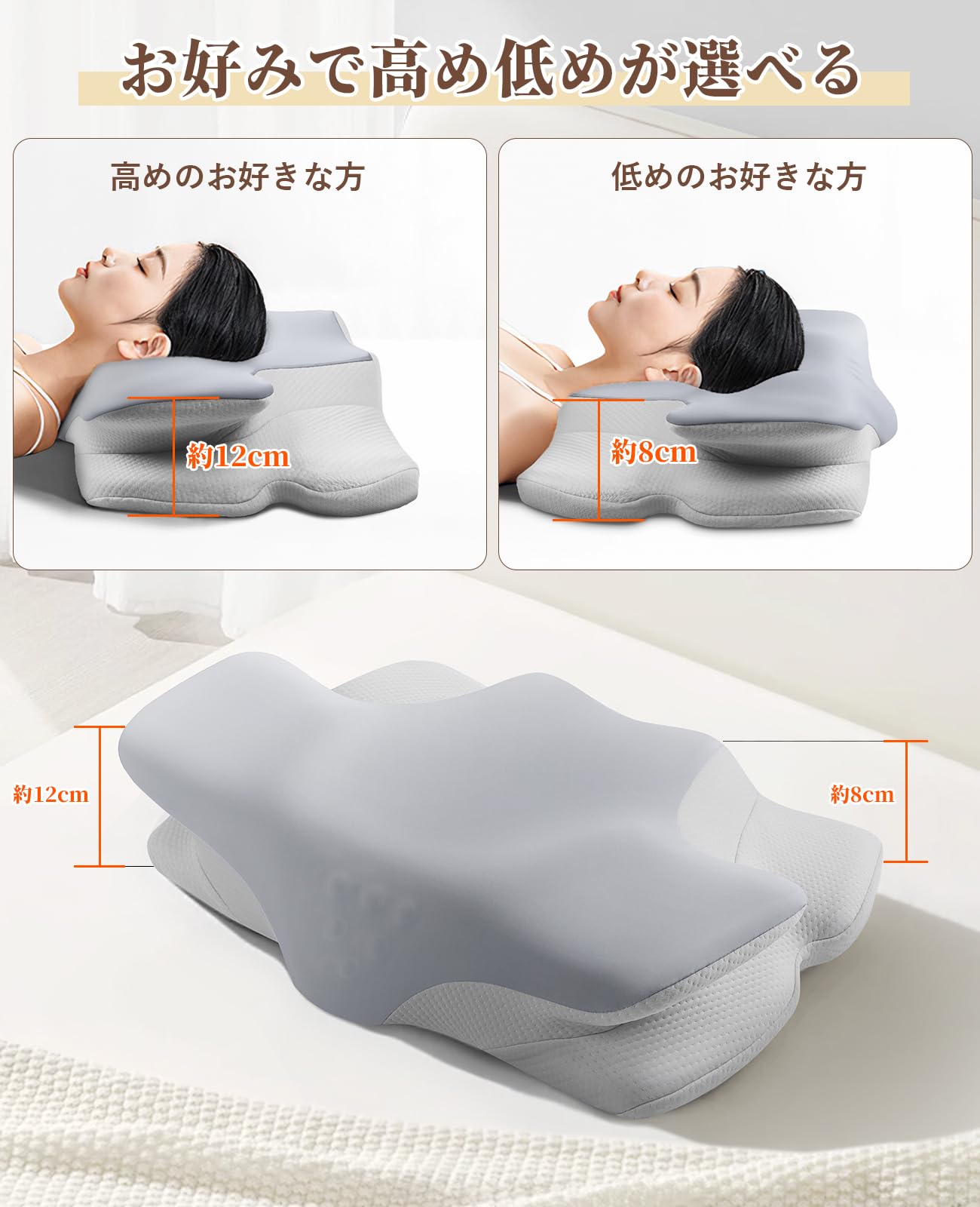 枕 首が痛くならない まくら 低反発枕 安眠枕 仰向け寝 横向き寝 快眠枕 肩がラク 安眠 よく眠れる 低め 高め調整可 pillow 洗える枕カバー 父の日/母の日 誕生日/クリスマス プレゼント グレー