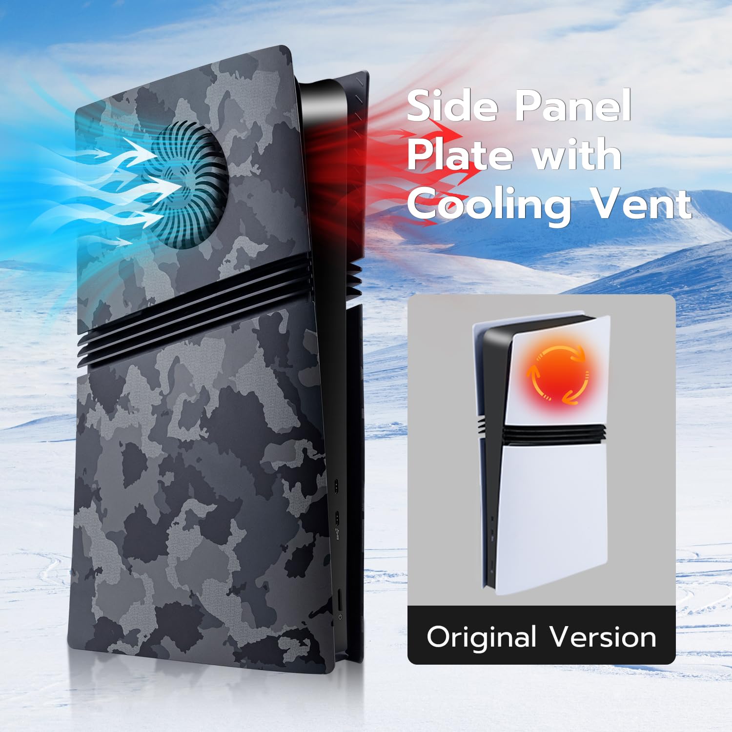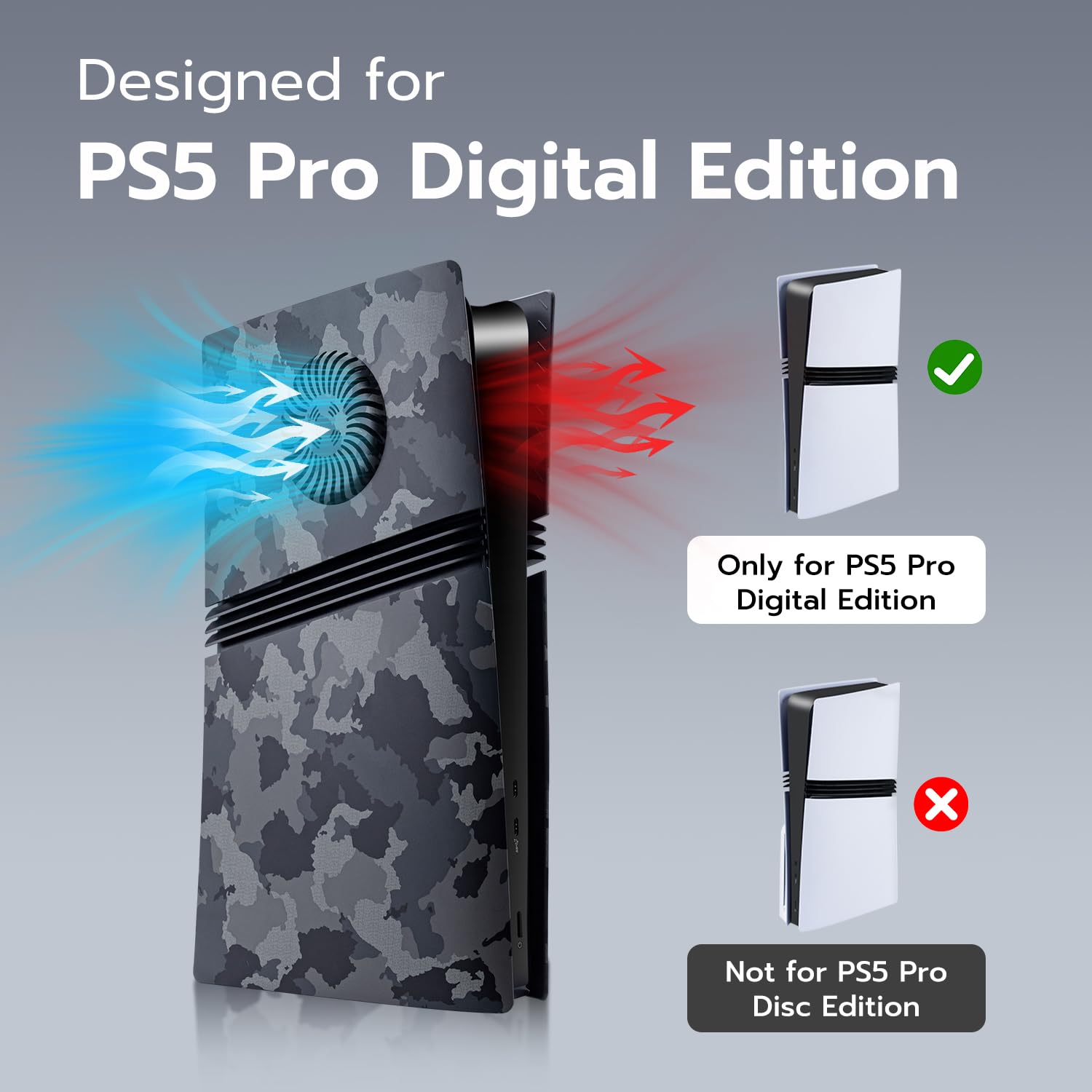 Mcbazel PS5 Pro交換用フェイスプレート デジタル版 冷却口付き 放熱対策 傷防止 保護ケースカバーPS5 Proデジタル版のみ対応 (通気孔付き)-ブラック