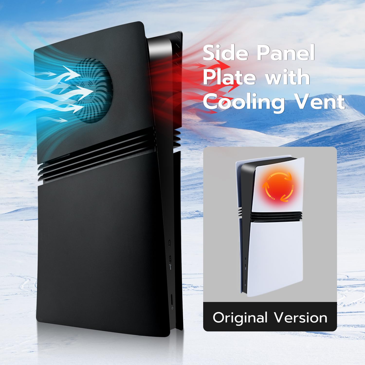 Mcbazel 新型 PS5 Slim交換用フェイスプレート 冷却口付き 放熱対策 傷防止 保護ケースカバーPS5 Slimデジタル版のみ対応 PS5 Pro非対応-ブラック