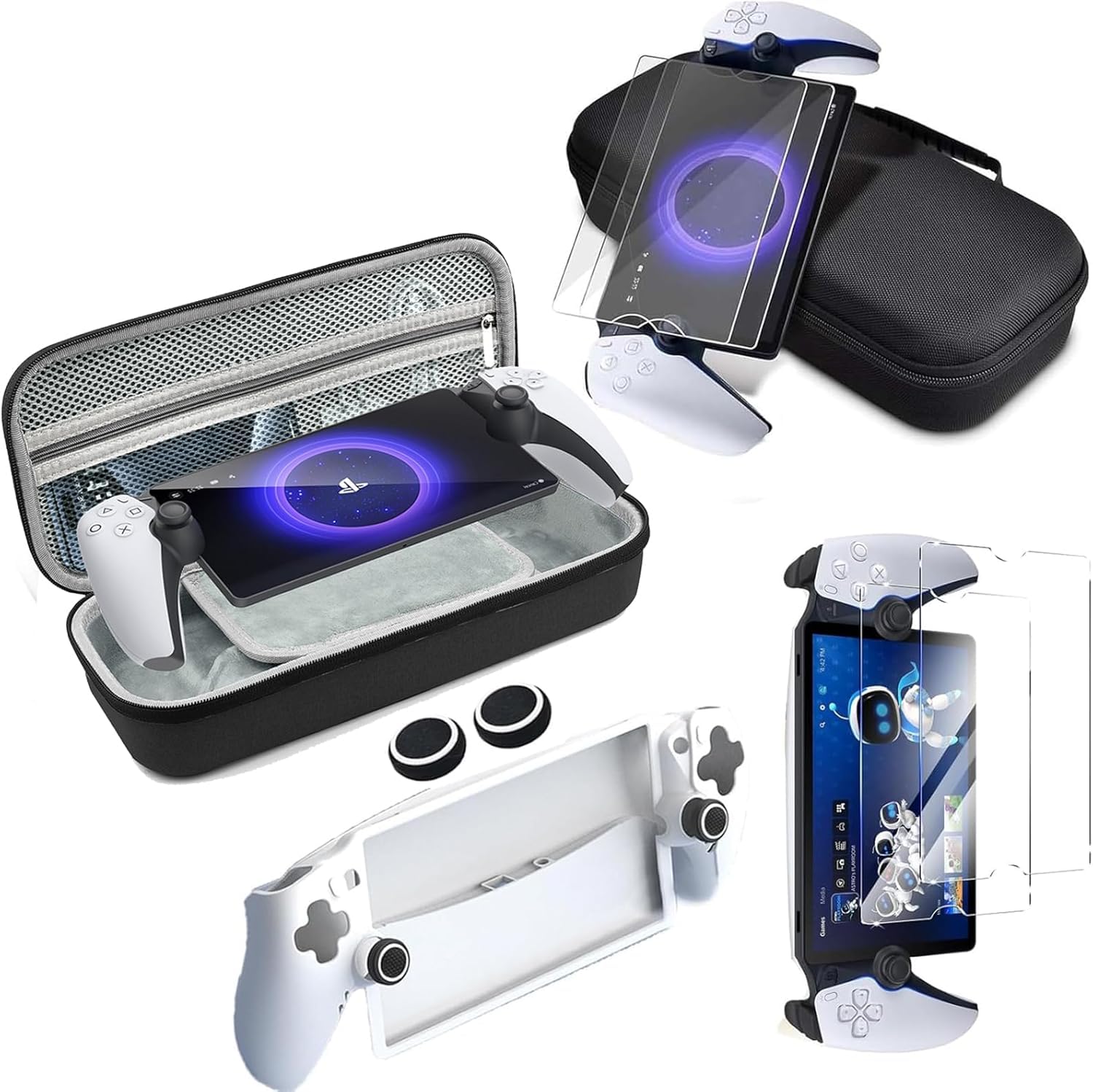 JoyHood 収納ケース専用PS Portal - 4 in 1、ケース用 PSポータルハード、耐衝撃バッグ対応 PS5リモートプレイヤー + シリコンケース + 2枚保護フィルム、 ハードケース対応 Playstation Portal 大容量 全面保護 持ち運びに便利 (ホワイト)