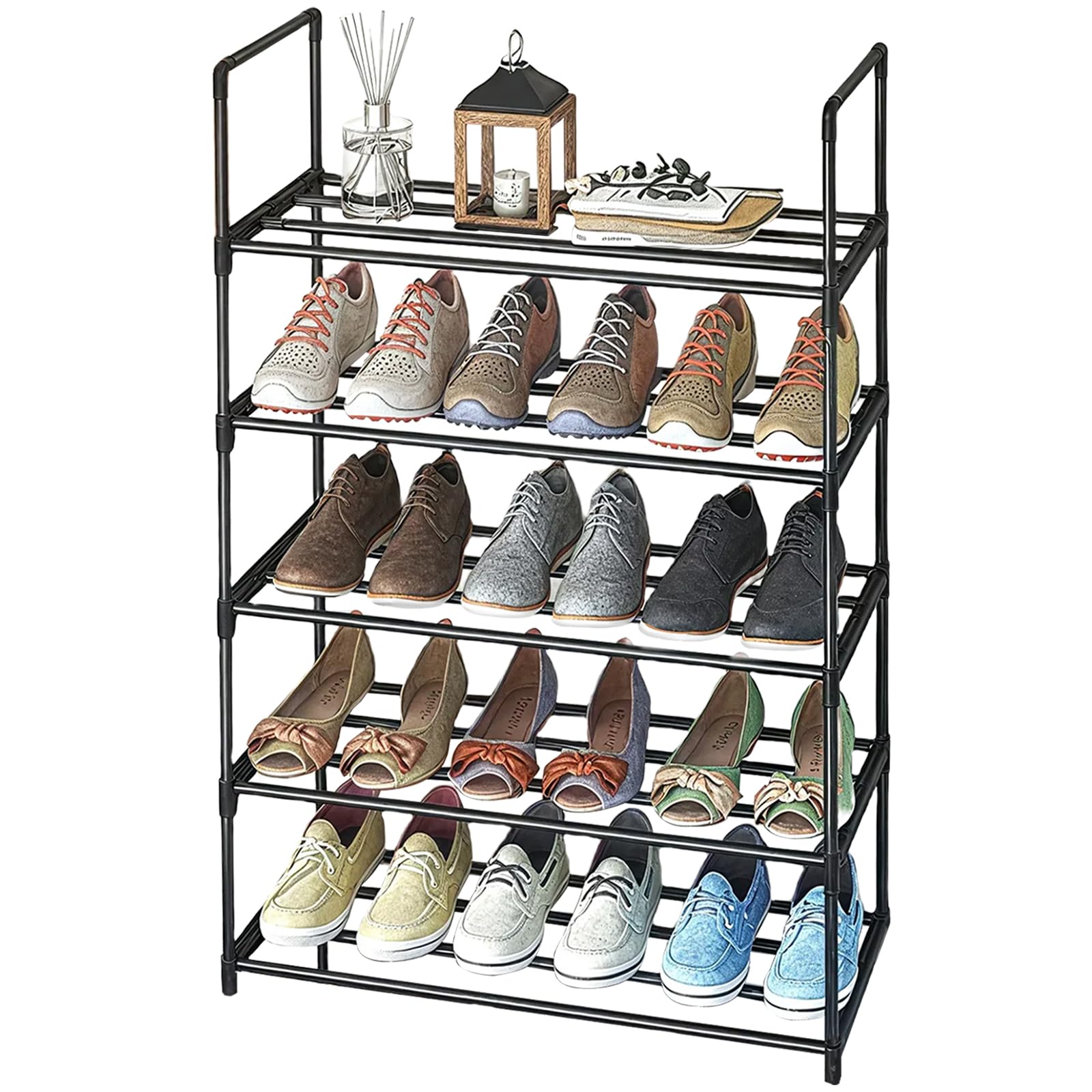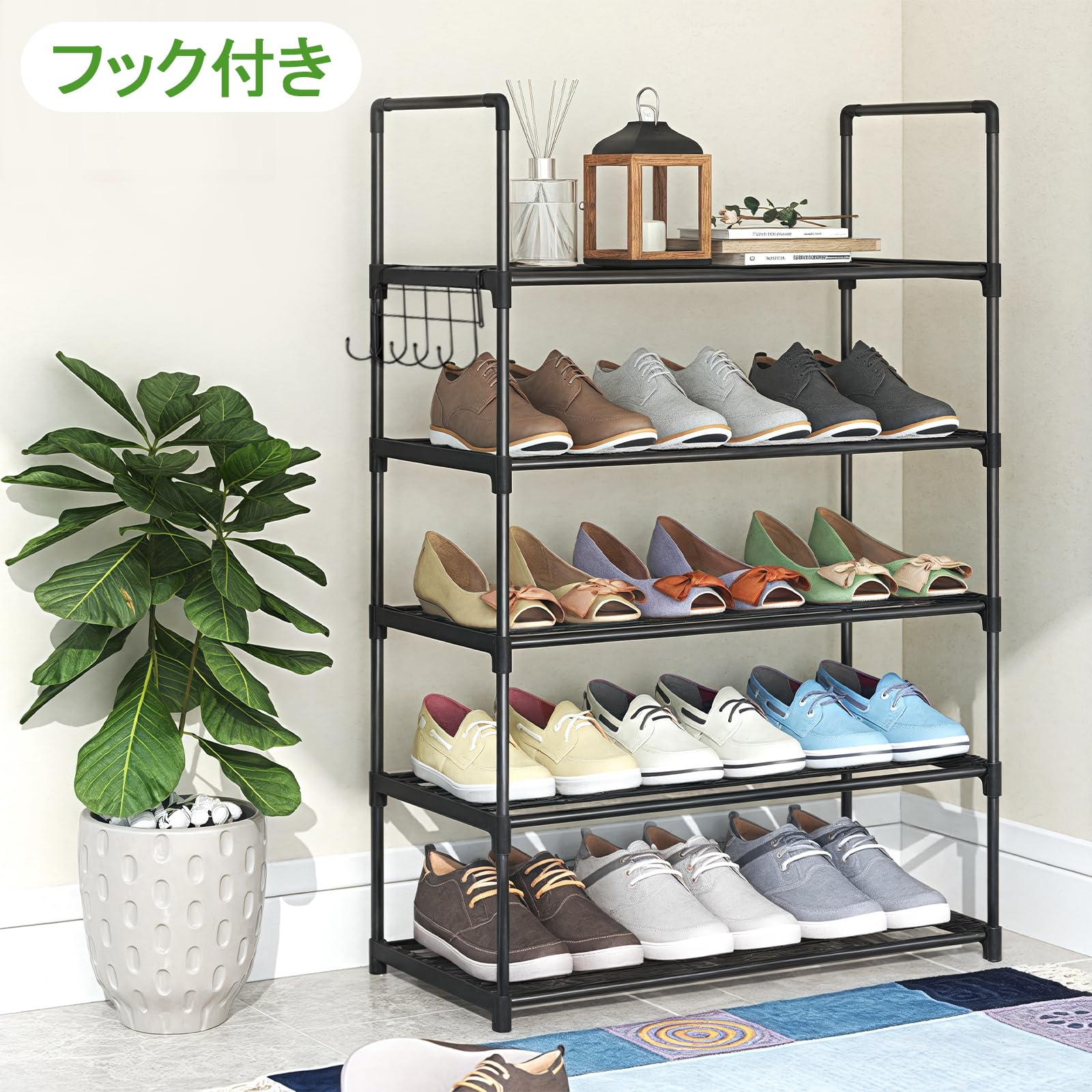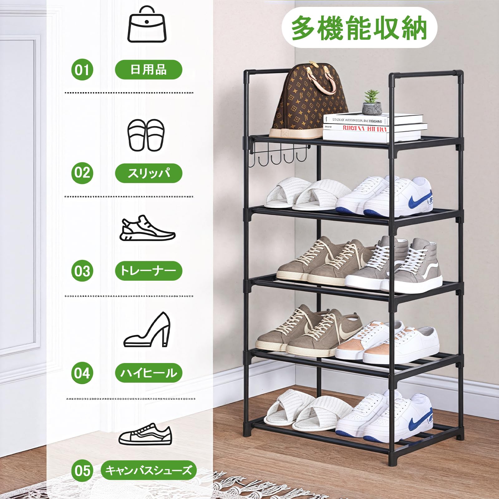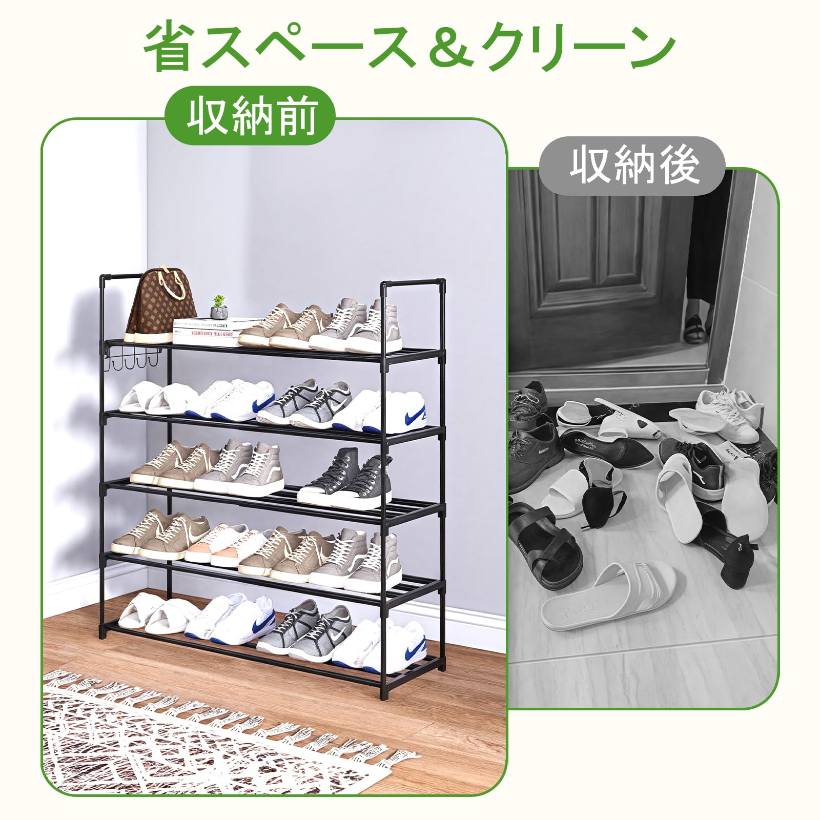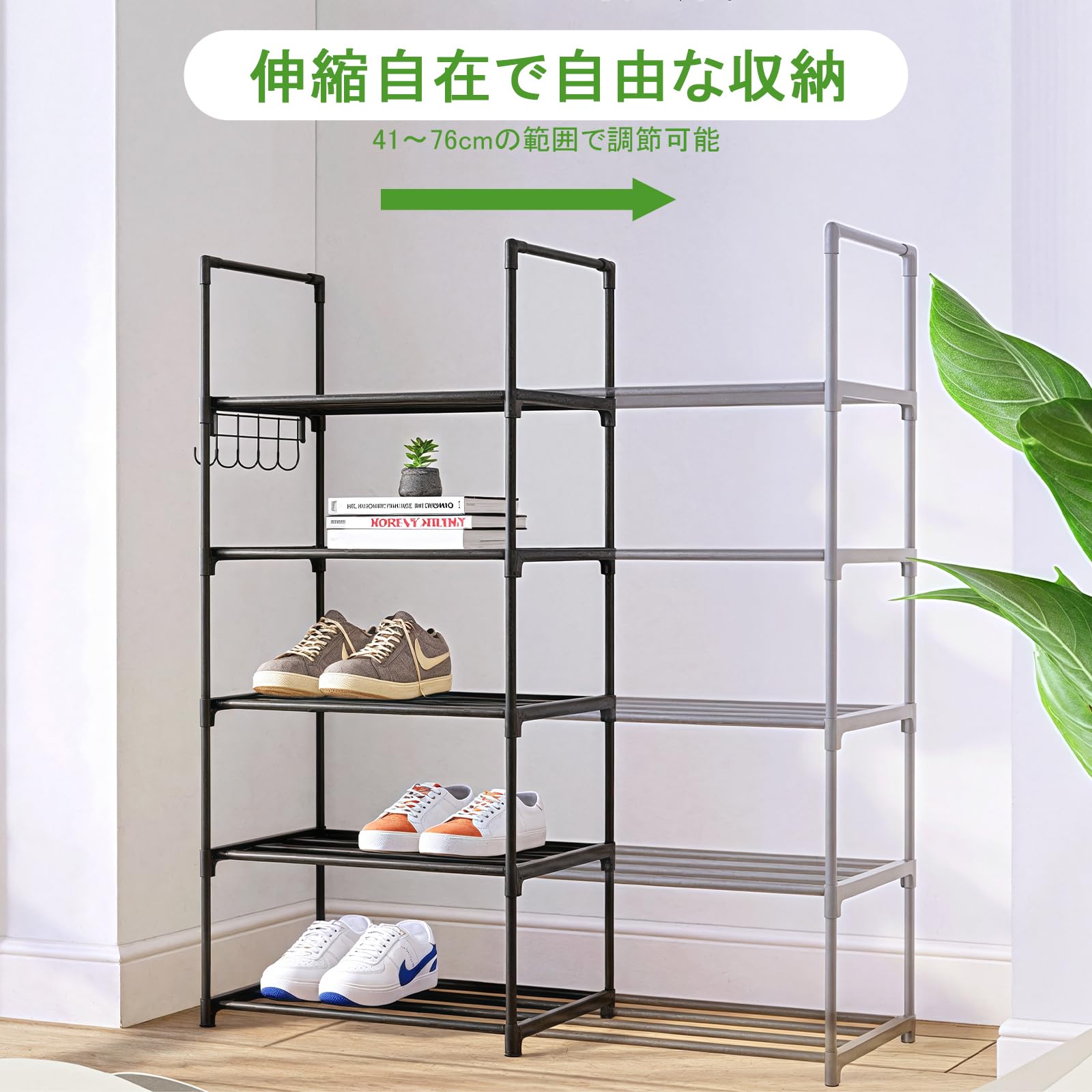 シューズラック シューズボックス 5段 玄関 収納 靴棚 長さ40-76 cm調整可能 幅30.5 cm 高さ87.5 cm 靴収納 靴箱 通気性 靴入れ 省スペース 大容量 簡単 組み立て 工具不要