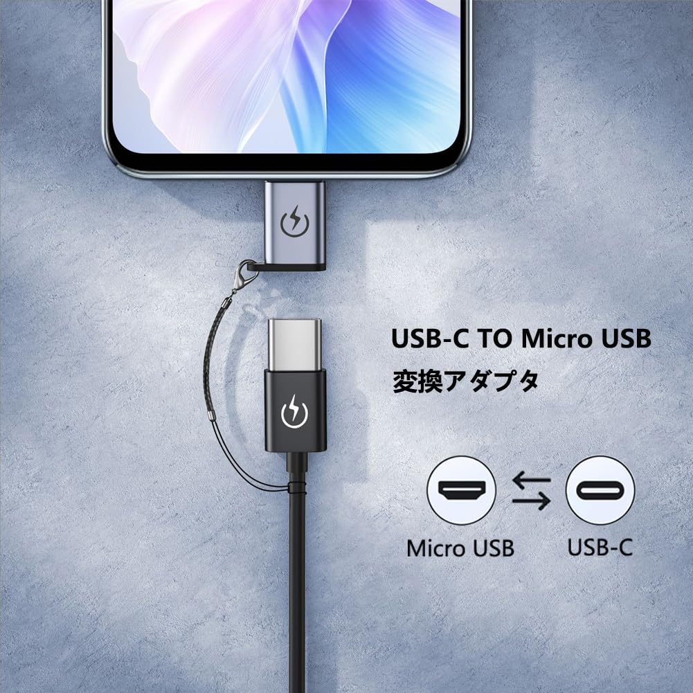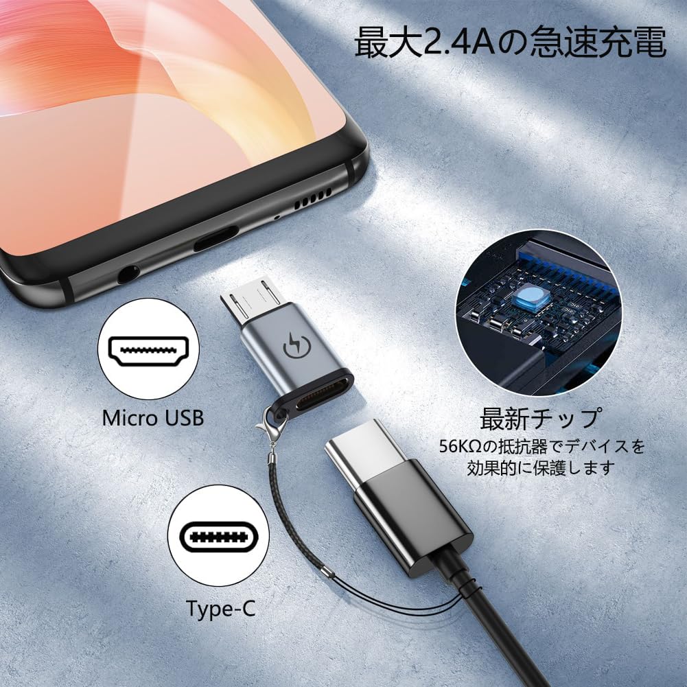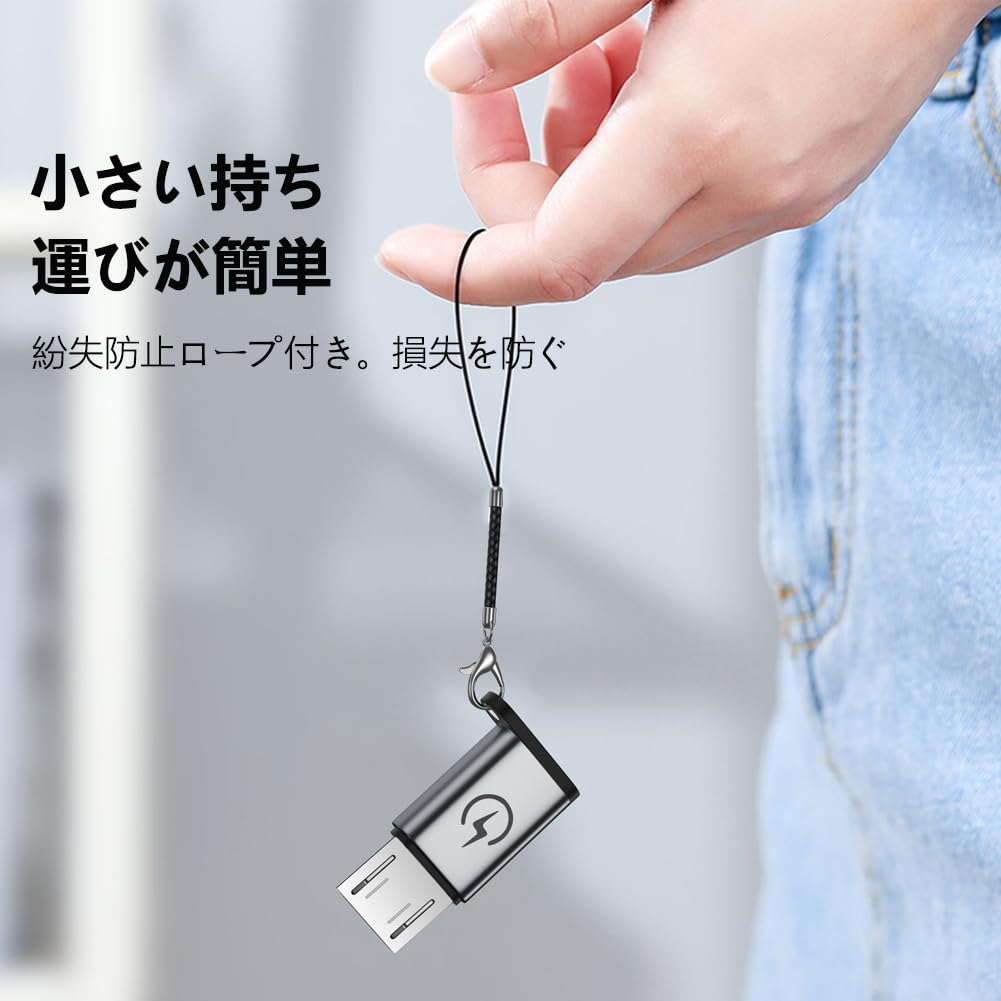 マイクロ USB 変換アダプター タイプC Micro USB 変換 4個入り USB C to Micro USB 変換 コネクタ Type-C to Micro USB変換アダプタ 急速充電とデータ同期 Xperia、Galaxy S7 Edge、Nexus、 P10 Lite等Micro USB設備対応 紛失防止ロープ付き