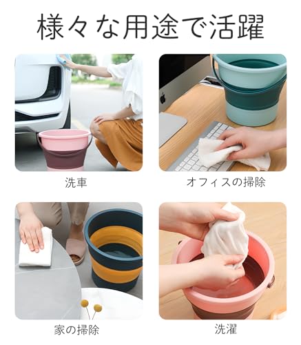Gorocking 折りたたみ バケツ 5L/10L/17L 4色 掃除 洗濯 洗車 足湯 釣り (ピンク, 10L)
