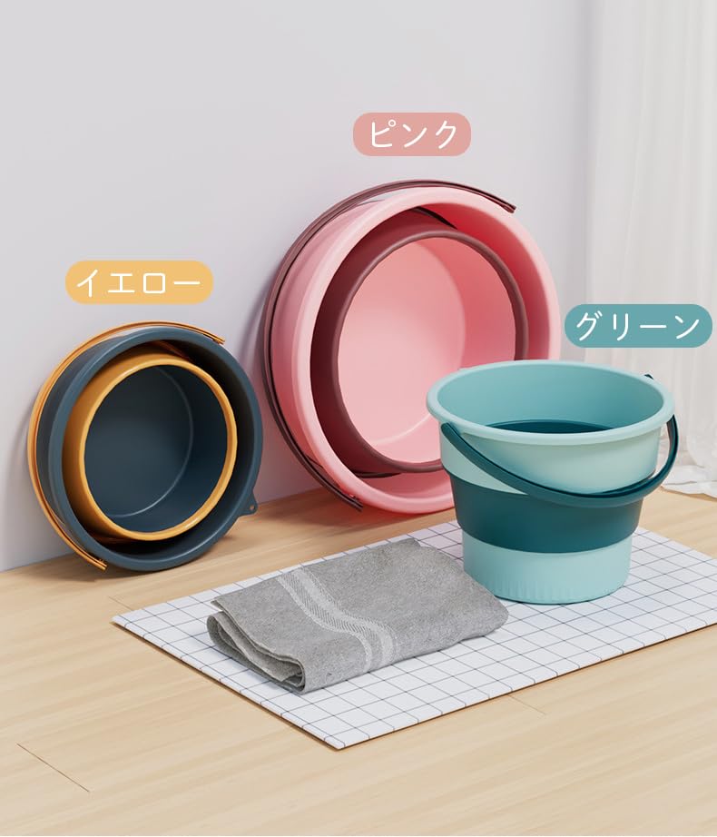 Gorocking 折りたたみ バケツ 5L/10L/17L 4色 掃除 洗濯 洗車 足湯 釣り (ミントグリーン, 9L)