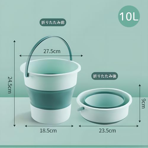 Gorocking 折りたたみ バケツ 5L/10L/17L 4色 掃除 洗濯 洗車 足湯 釣り (グリーン, 10L)