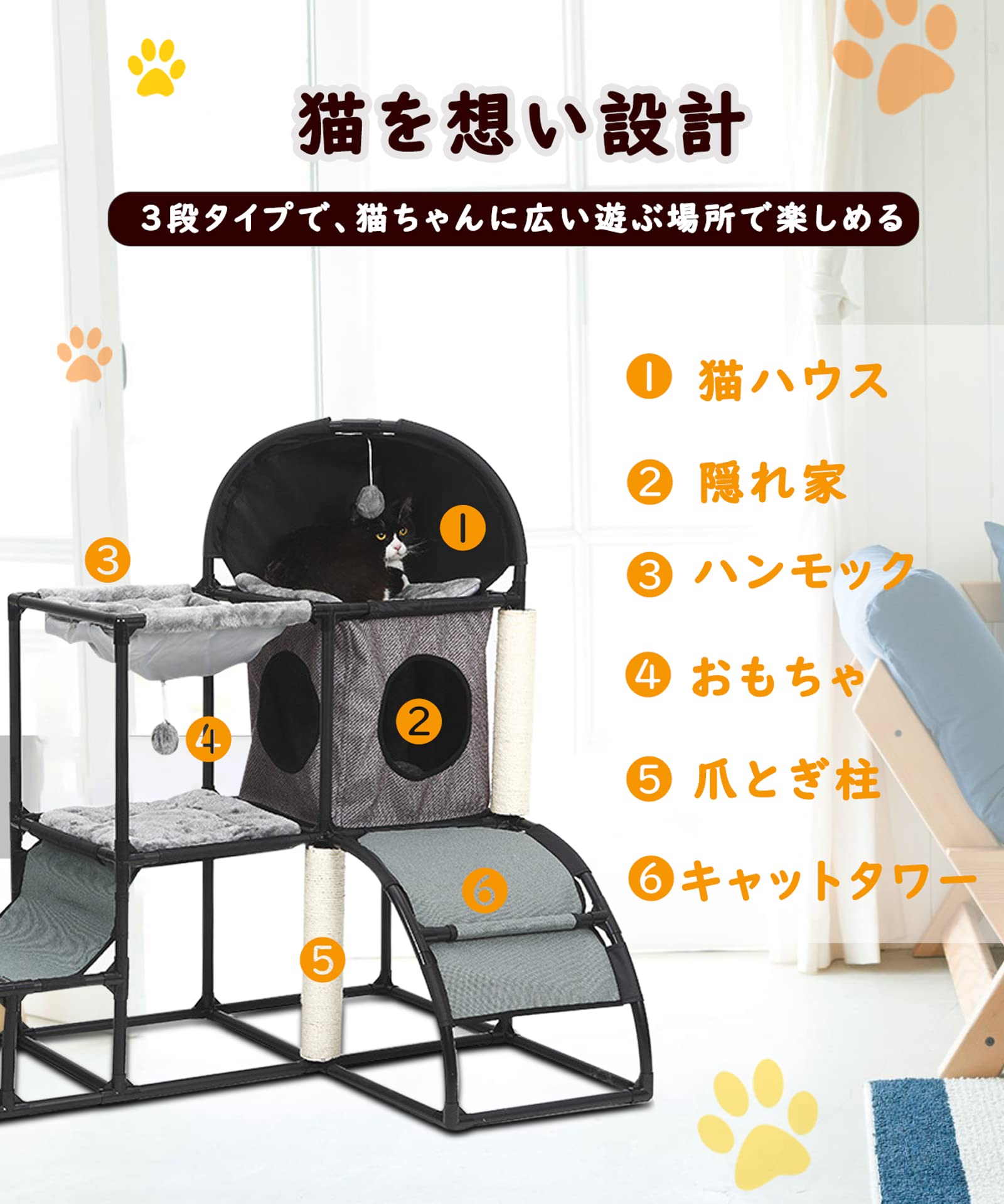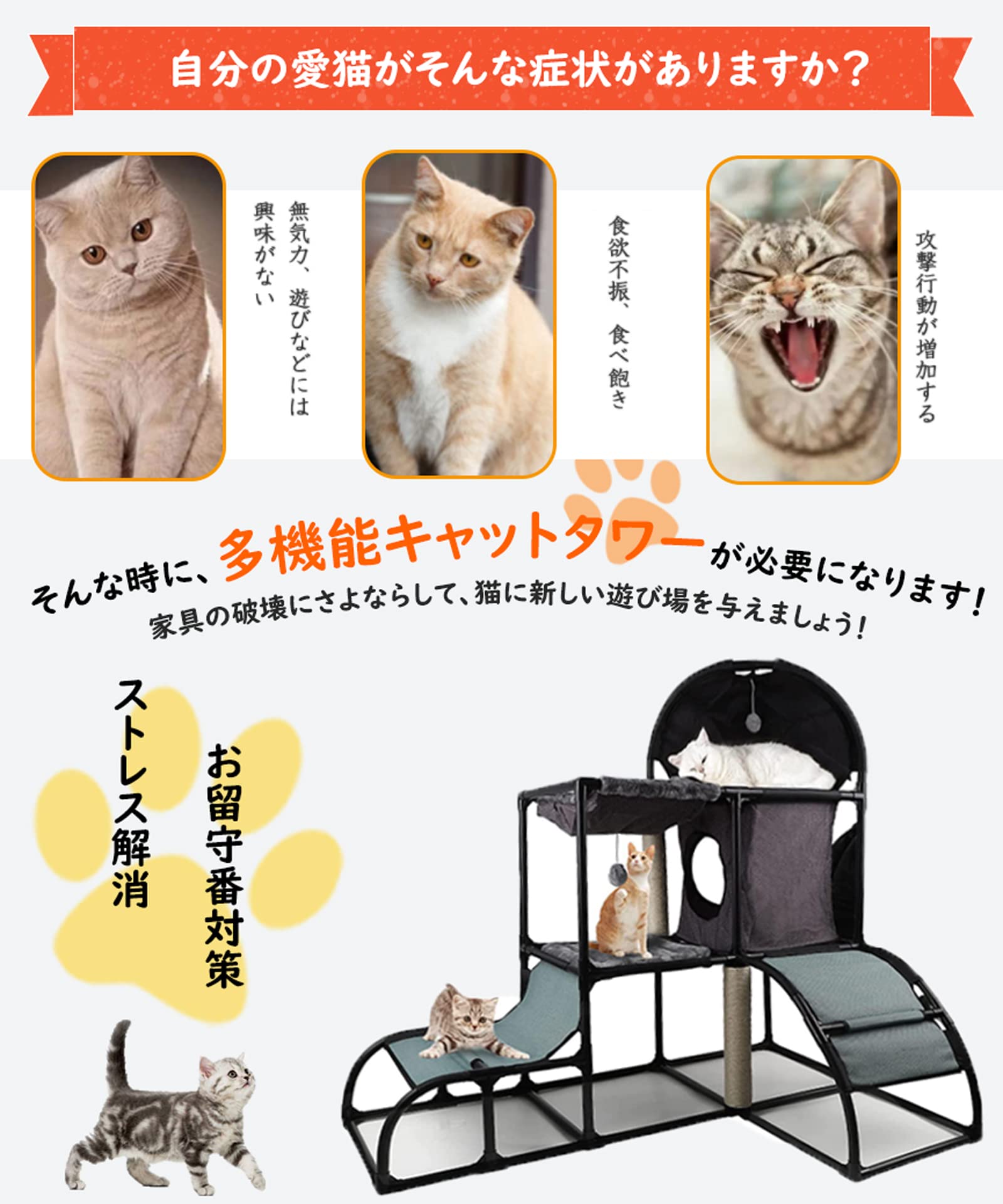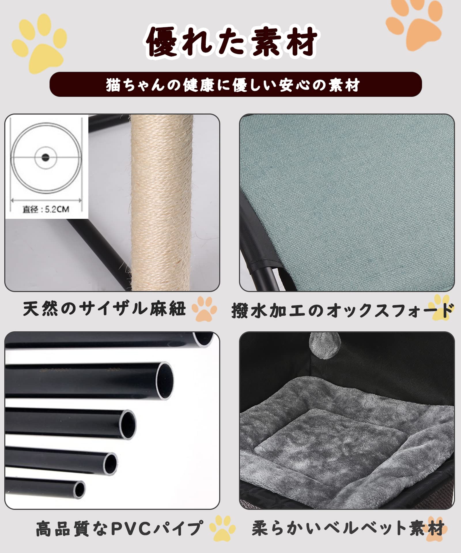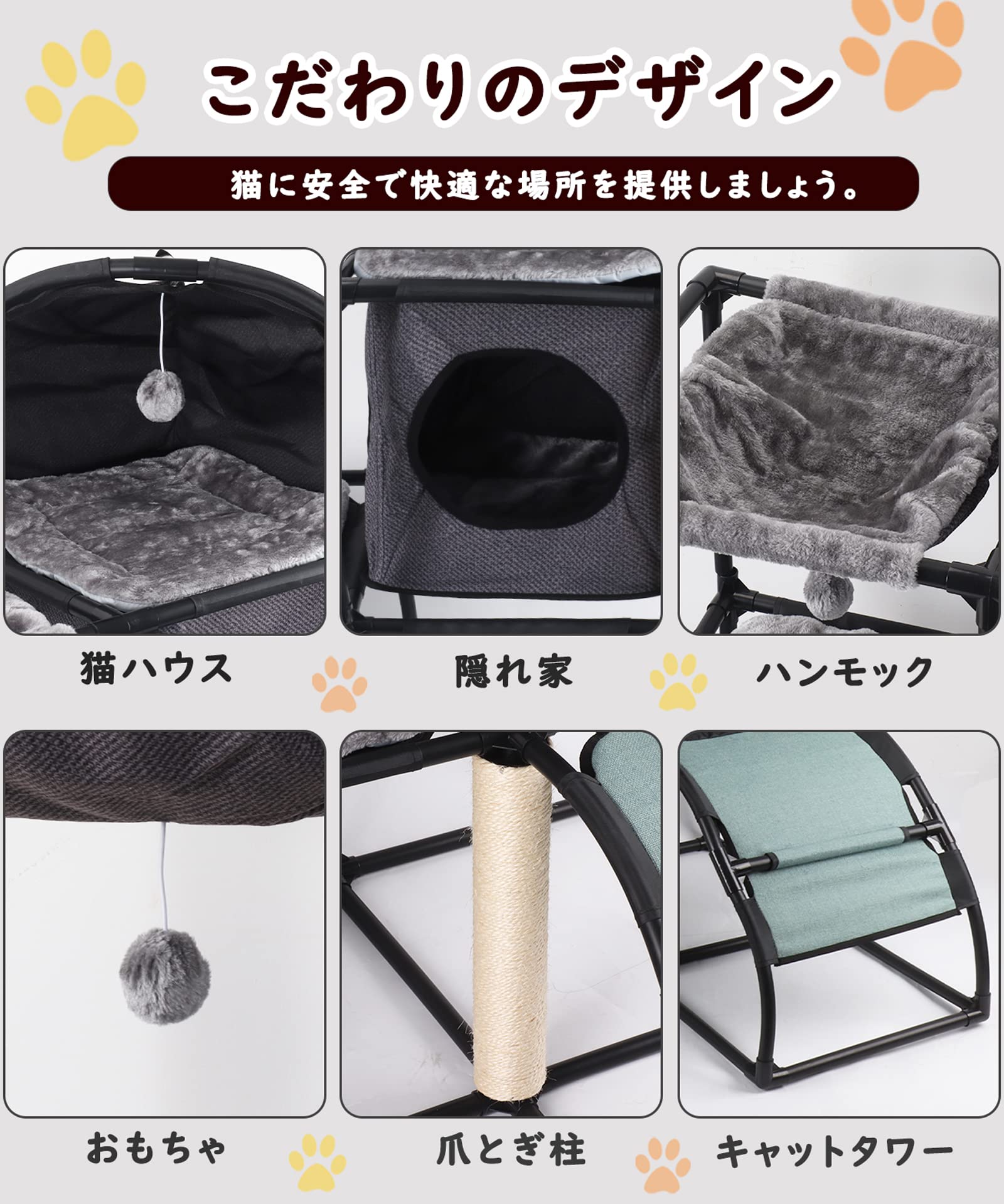 キャットタワー 木製 猫タワー 据え置き型 宇宙船 爪とぎポール ねこハウス ネコタワー 多頭飼い 高さ135cm 高い安定性 おしゃれ 組み立て簡単 お手入れ簡単
