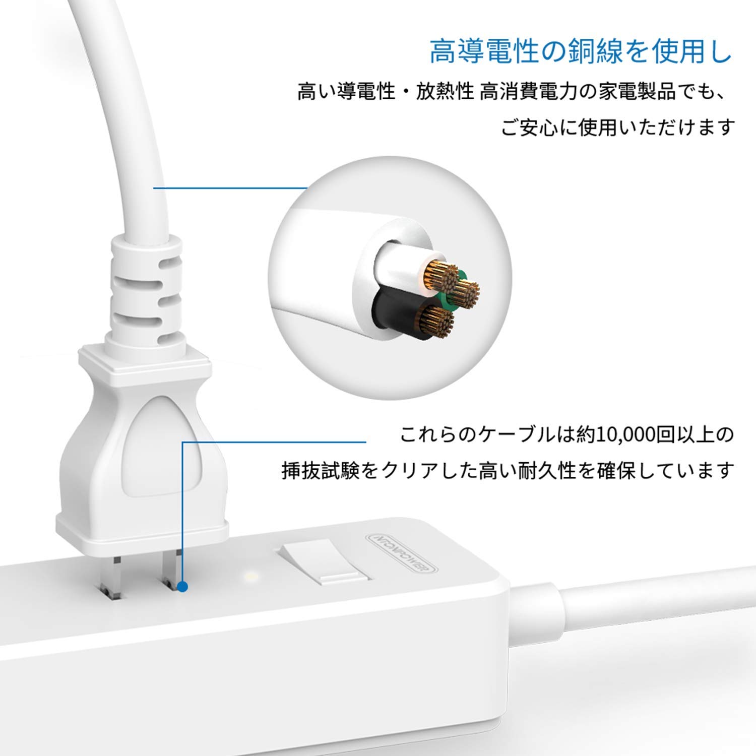 DanYee 電源タップ 延長コード ほこり防止シャッター付き 極性対応 3ピンプラグ接続可能 (ホワイト, 2m)