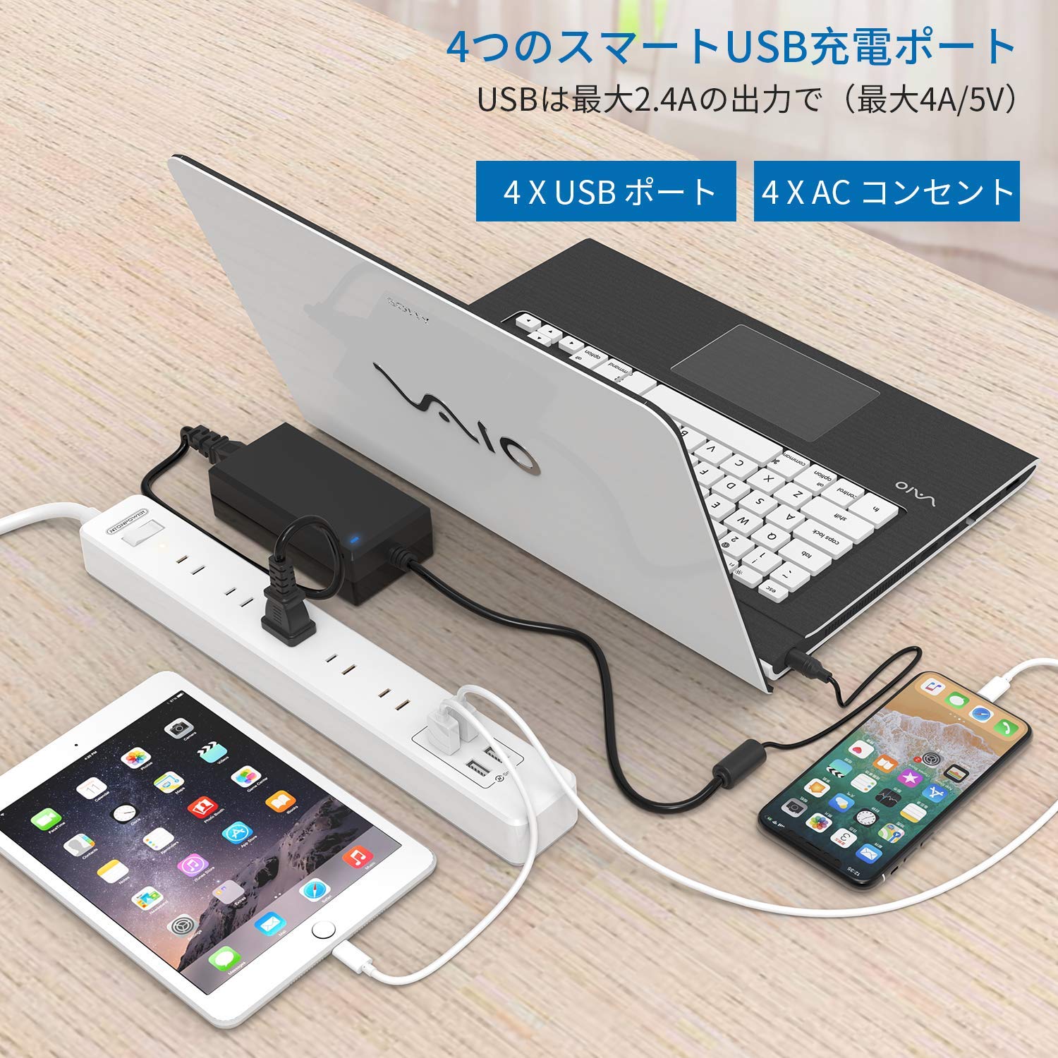 USB 電源タップ コンセント AC10個口(100-125V)+4USBポート(最大3.4A/5V) 卓上タップ 雷ガード 一括スイッチ 過負荷保護 省エネ 延長コード1.8m オフィス/家庭充電用 急速充電 テーブルタップ