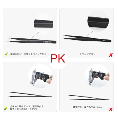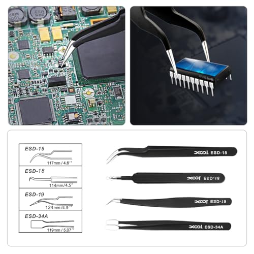 XOOL 精密ピンセット 9本セット ESD 静電防止 ステンレス製 ツイーザー 電子機器修理 宝石製作 ネイルアート用 収納袋付き