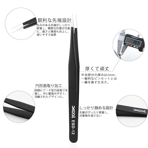 XOOL 10本精密ピンセット 極細 ESD静電防止 ステンレス製 時計、模型制作、宝石セッティング、电子维修用ピンセット 収納袋付き