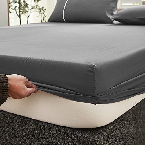 クモリ(Kumori) ボックスシーツ 洗いざらし 柔らかい 肌触り 無地 耐久シワ加工 洗える 吸湿速乾 着脱簡単 オールシーズン ベッド/マットレス/敷き布団対応 ベッドシーツ シーツ マットレスカバー ベッドカバー (クイーン・160X200cm, ライトグレー)