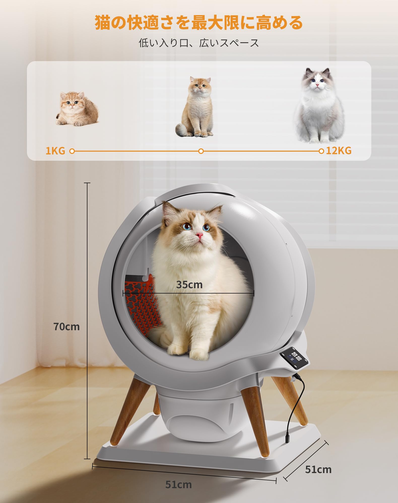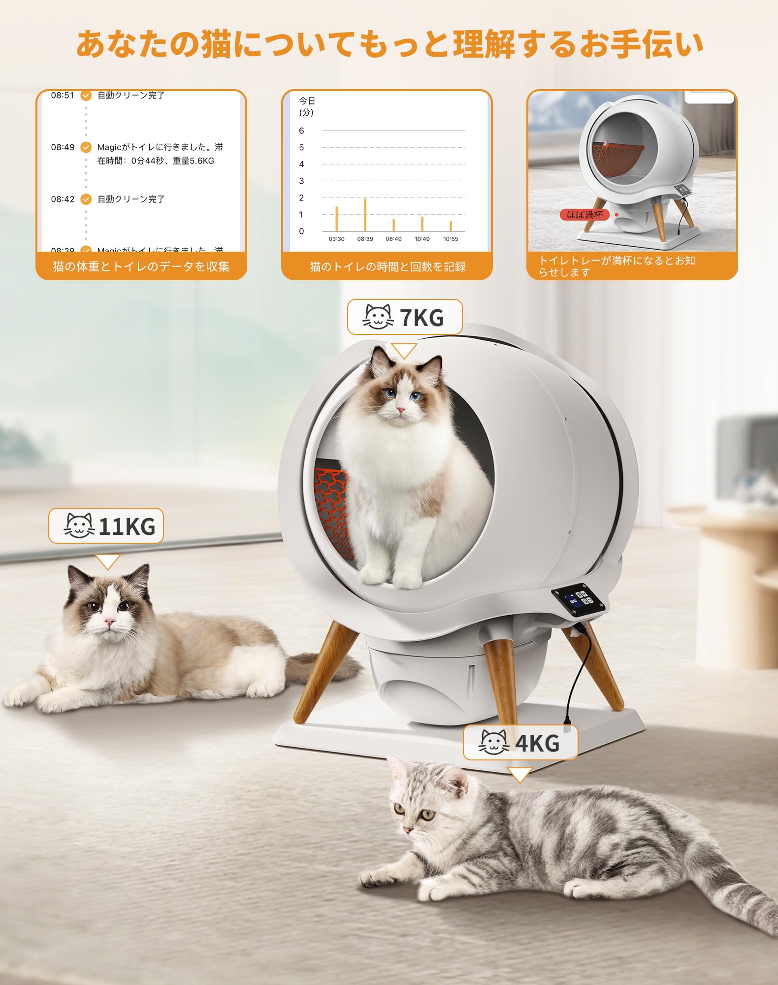 【完全挟み込み防止】猫 トイレ 自動トイレ オシッコが漏れない 猫自動トイレ 開封後にすぐ使える 強力脱臭 猫自動トイレ 自動清掃 掃除簡単 スマホ管理 センサー付き 全自動猫トイレ お留守番対策 遠隔操作 専用APP IOS/Android対応 猫用トイレ 大容量 多頭飼い対応 お手入れ簡単 日本語説明書付き