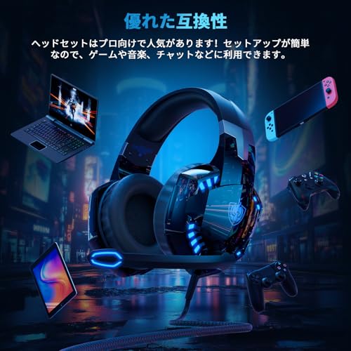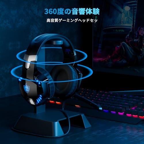 PHOINIKAS ゲーミングヘッドセット ps4 ヘッドホン ps5 ヘッドセット 有線 マイク付き ゲーミング へっどほん フォートナイト へっどせっと Switch スイッチ ヘッドフォン LED ノイズキャンセリング 軽量 プレステ4/ゲーム用/任天堂/PC/FPS/携帯 対応 男女兼用 プレゼント (青)
