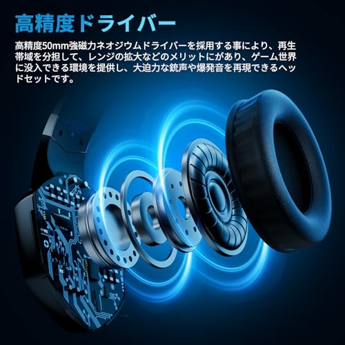 ゲーミングヘッドセット 有線 無線両用 低遅延 USB 2.4GHz Bluetooth 5.3 有線3WAY接続 ゲーミングヘッドホン 着脱式ノイズキャンセルマイク 45時間連続再生 重低音強化ヘッドセット pc ps5 ps4 スマホxboxone switch ヘッドフォン 黒