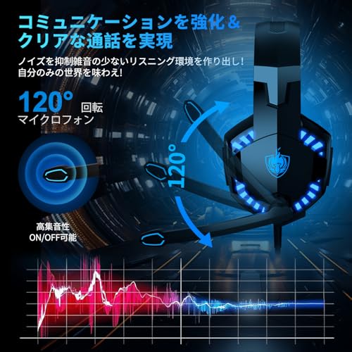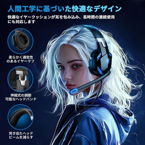 ゲーミングヘッドセット 有線 PS4用ヘッドセット マイク付き 有線ヘッドセット PCゲーミング フォートナイト PC PS5 PS4 スマホ xboxone switch 対応ノイズキャンセリング 軽量 ゲーム用ヘッドセット 3.5mm有線のみ LEDブルー 黒