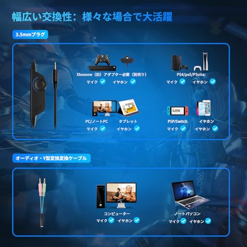 YOTMS 【正規品】ゲーミングヘッドセット ps4 ヘッドセット 有線 ps5ヘッドホン マイク付き ノイズキャンセリング ワンクリックミュート ゲーム用 スイッチ対応FPS PC ヘッドフォン 重低音 快適 軽量 伸縮可能 スマホ Switch XboxOne PC 青