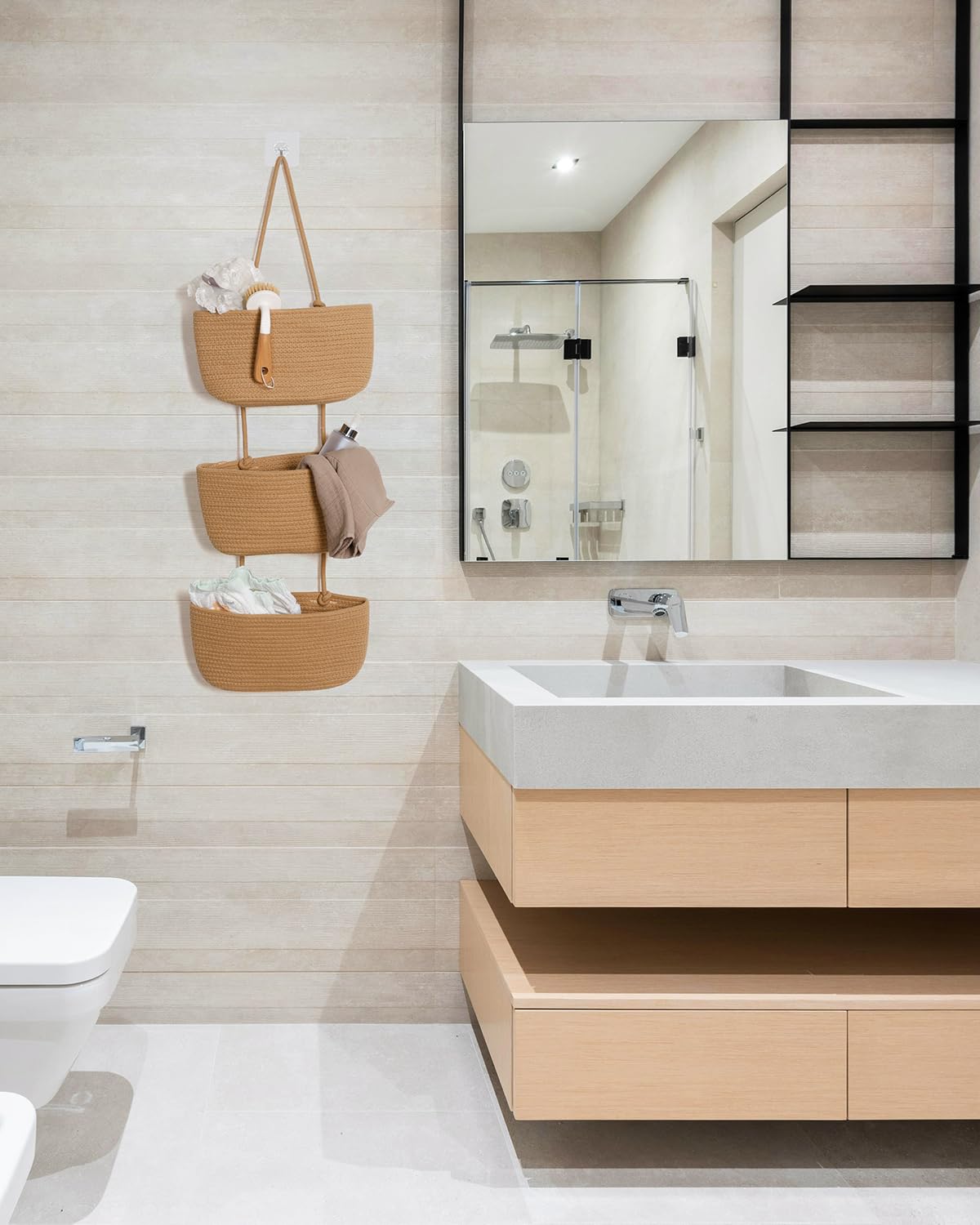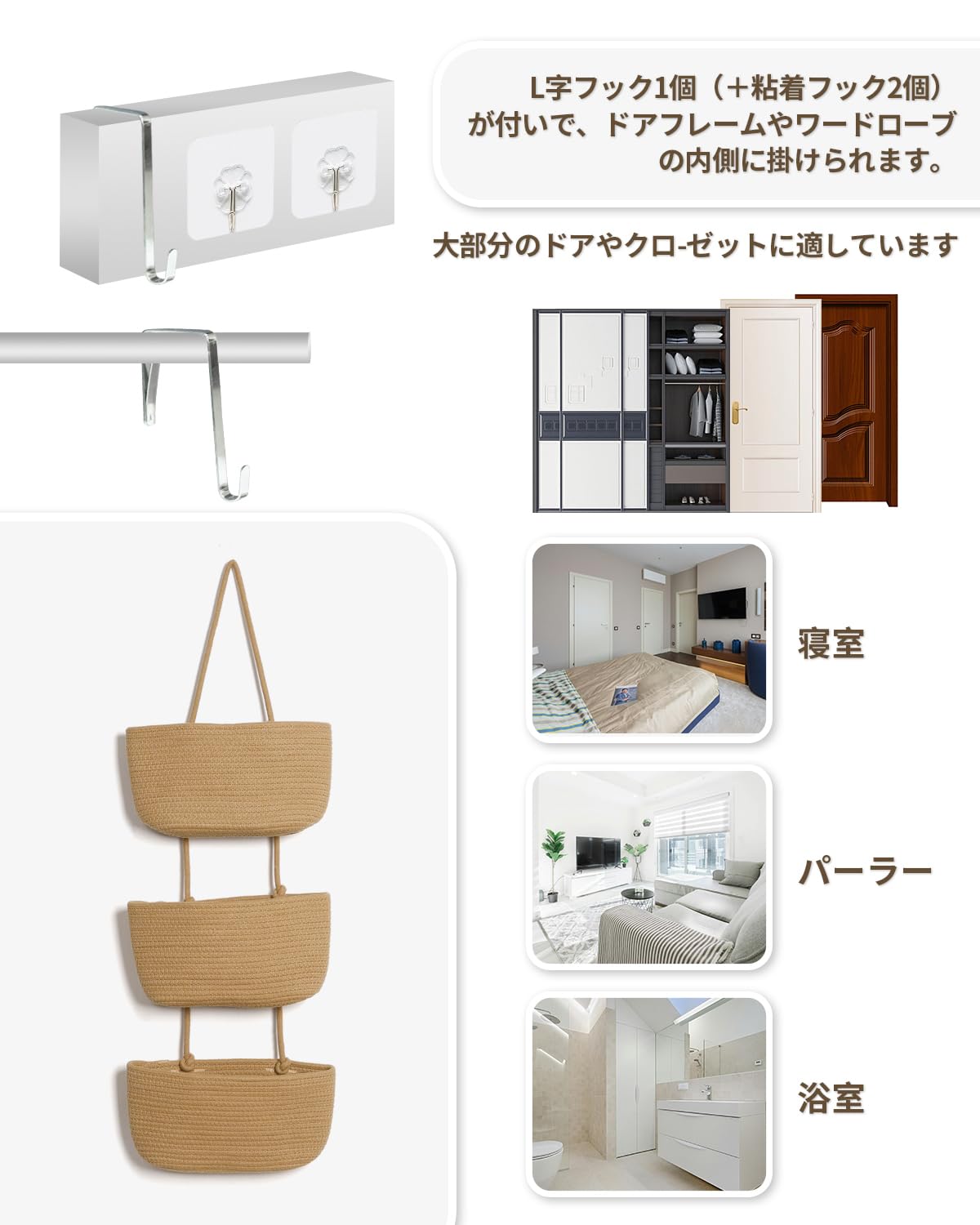 Qivineドア掛け収納ラック ウォールポケット 穴開け不要 吊り下げ式 3段オーガナイザー ドアフックシェルフ 省スペースキッチン バスルーム ベッドルーム