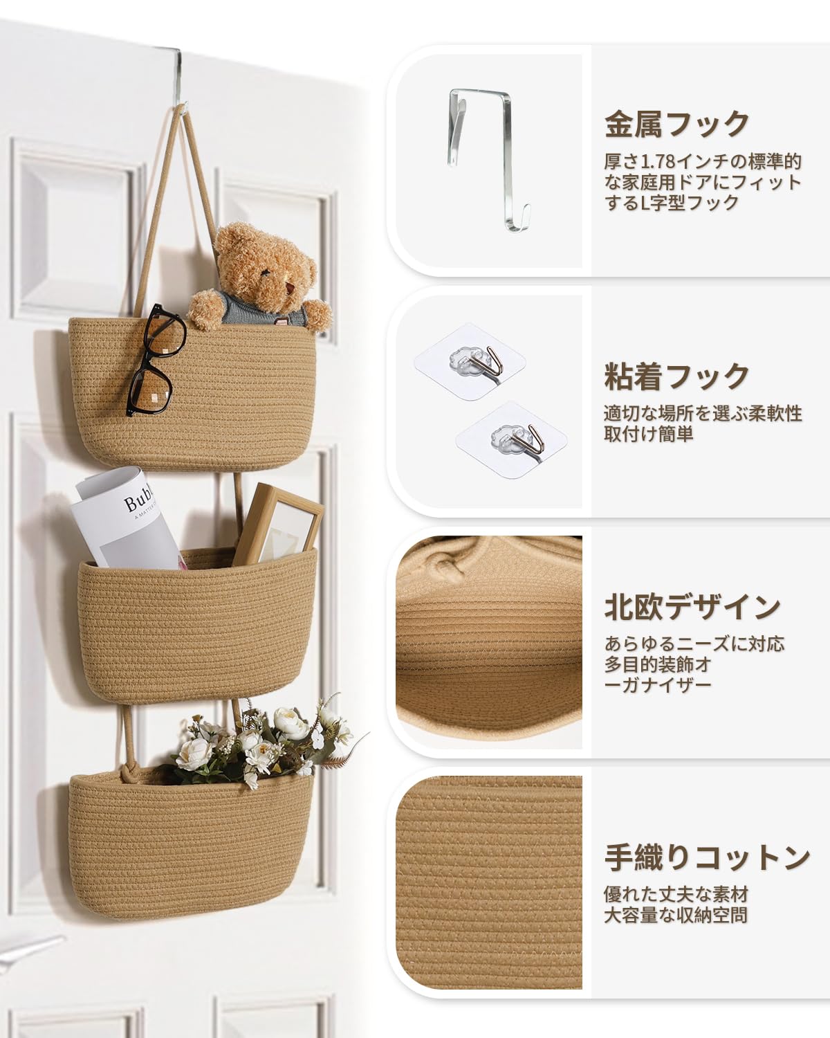 TATIU ウォールポケット 壁掛け 収納 ドアかけ 5段 ベージュ