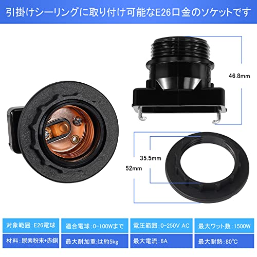Aiwode 角型引掛けランプソケットE26口金、引掛シーリング用 電球ソケット ランプソケット、led対応 ペンダントライト、工事不要 取り付け簡単(黒い、3個入り)