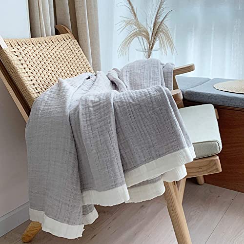 Vanxing ガーゼケット シングル 4重織り 天然綿100% 吸湿 通気 夏快眠 肌に優しい 年中快適 丸洗いOK 軽量 リバーシブル 150x200cm (無地,グレー)