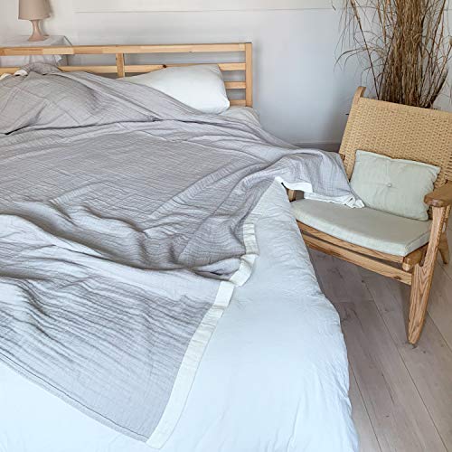 SE ガーゼケット タオルケット ダブル ダブルサイズ ブランケット 夏用 クイーン/キング 兼用 4重 ガーゼ生地 綿100% 吸湿通気 お肌にやさしい 四季通用 洗える グレー 200x230cm(ダブル・クイーンサイズ) 「SE Softexly」