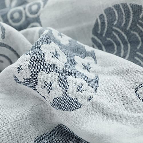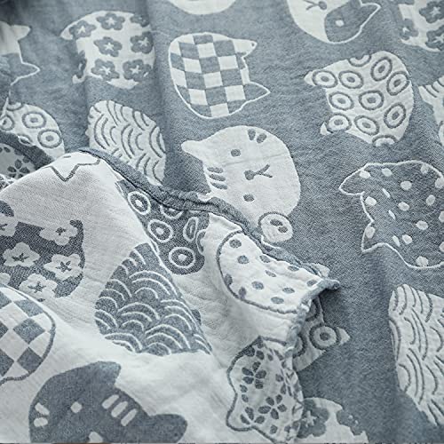 Vanxing ガーゼケット シングル 4重ガーゼ 天然綿100% 吸湿 通気 夏快眠 肌に優しい 年中快適 丸洗いOK 軽量 リバーシブル 150x200cm (猫顔柄・ブルー)