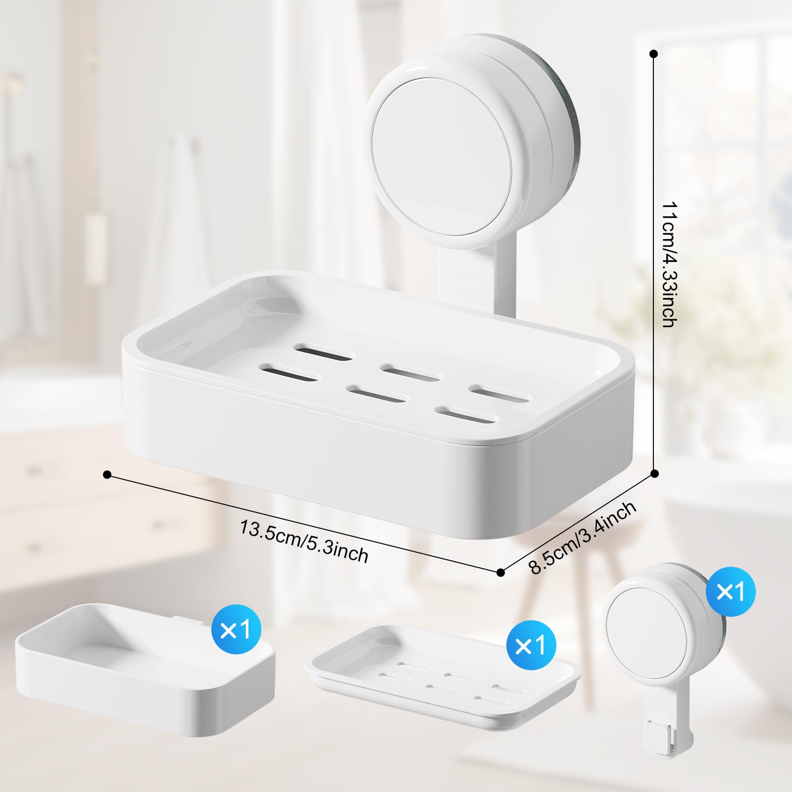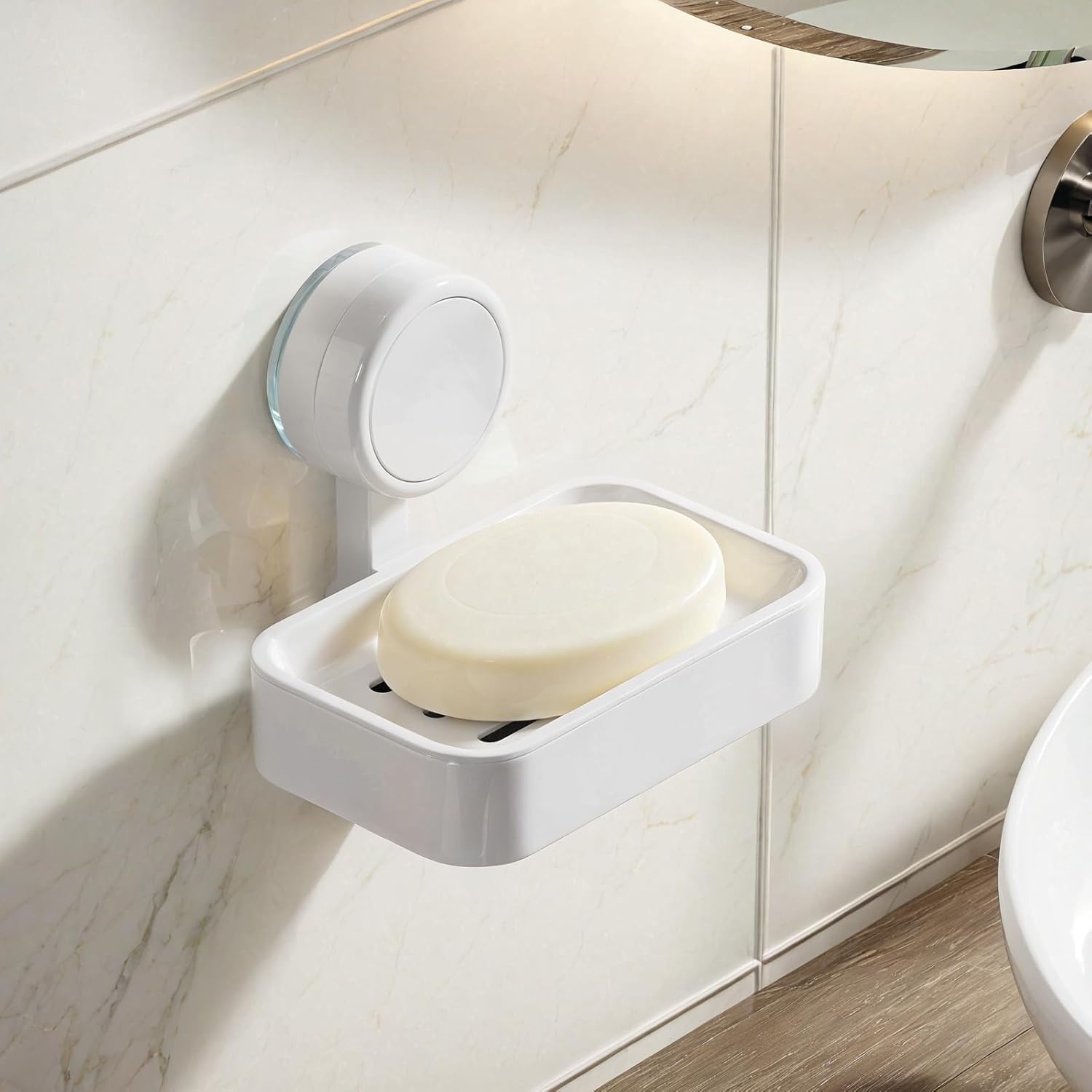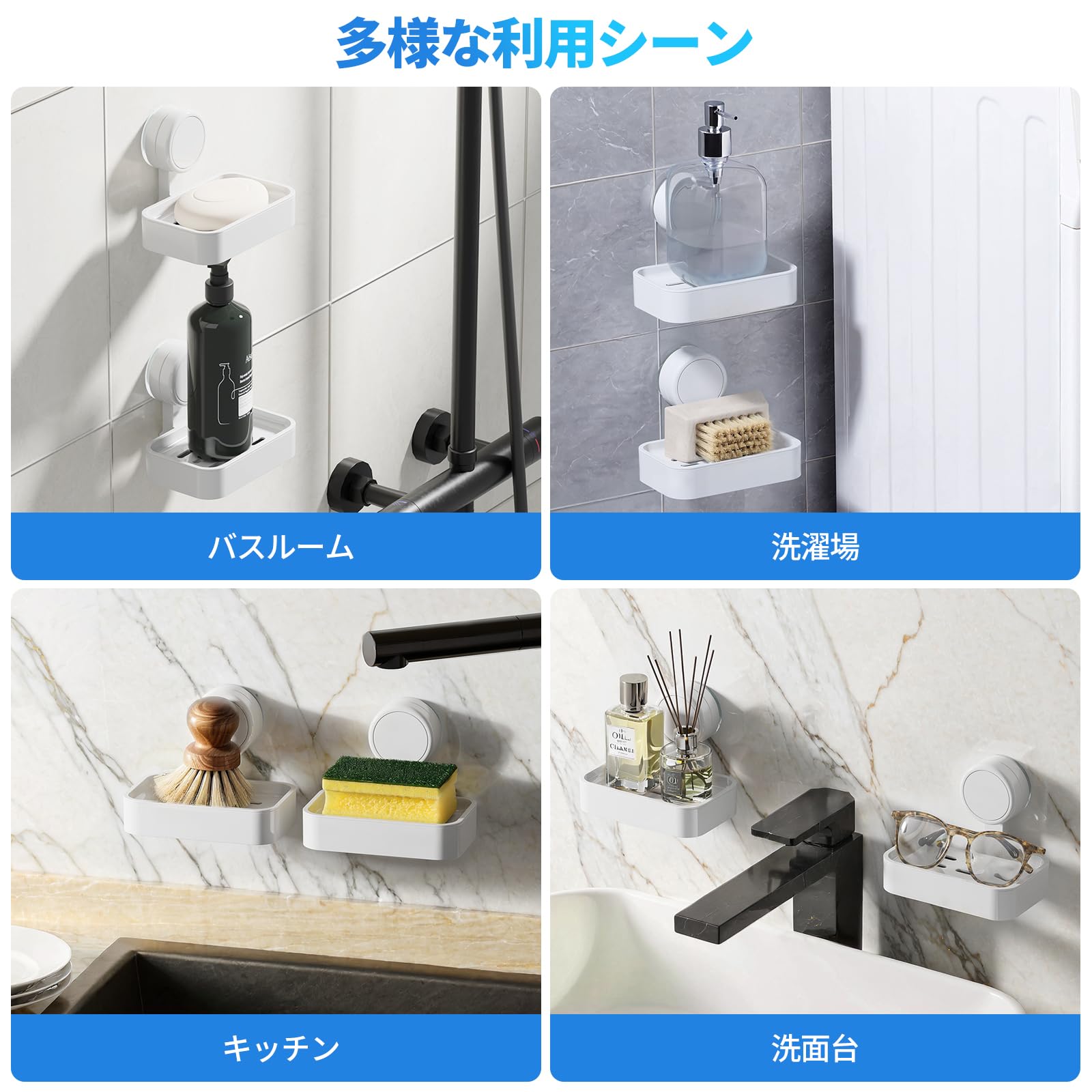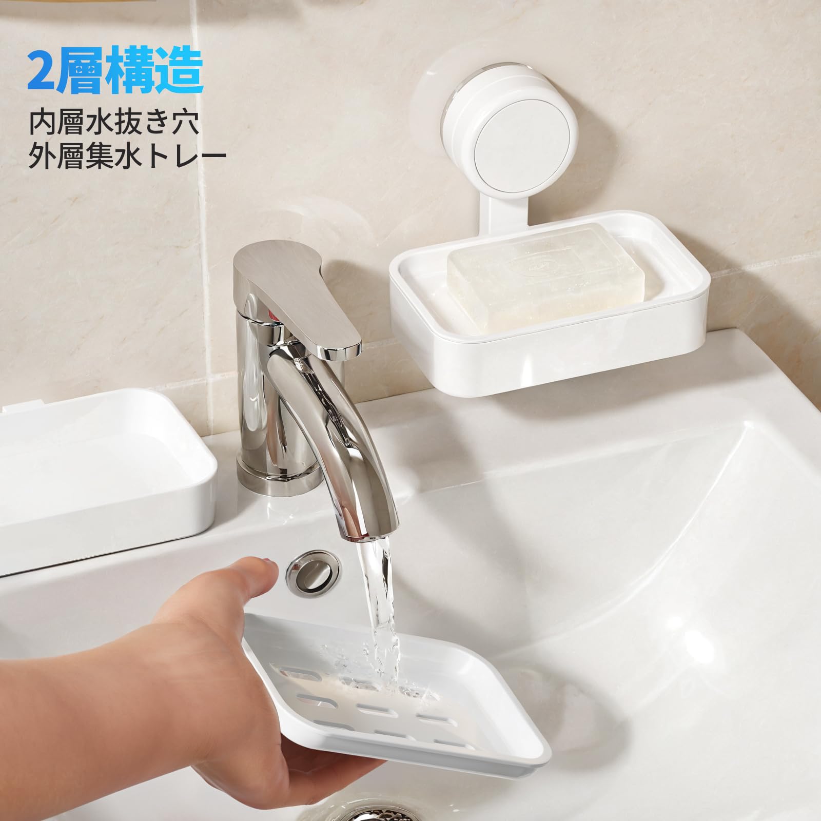 PAVSTINE 石鹸置き 吸盤 ソープディッシュ 水切り 強力吸盤 浴室 壁掛け 石鹸ホルダー 錆びない ソープトレー 固形石けん置き 石鹸入れ 浮かせる収納 多機能 省スペース お風呂/バスルーム/洗面台/キッチン ソープホルダー バス用品 (ホワイト)