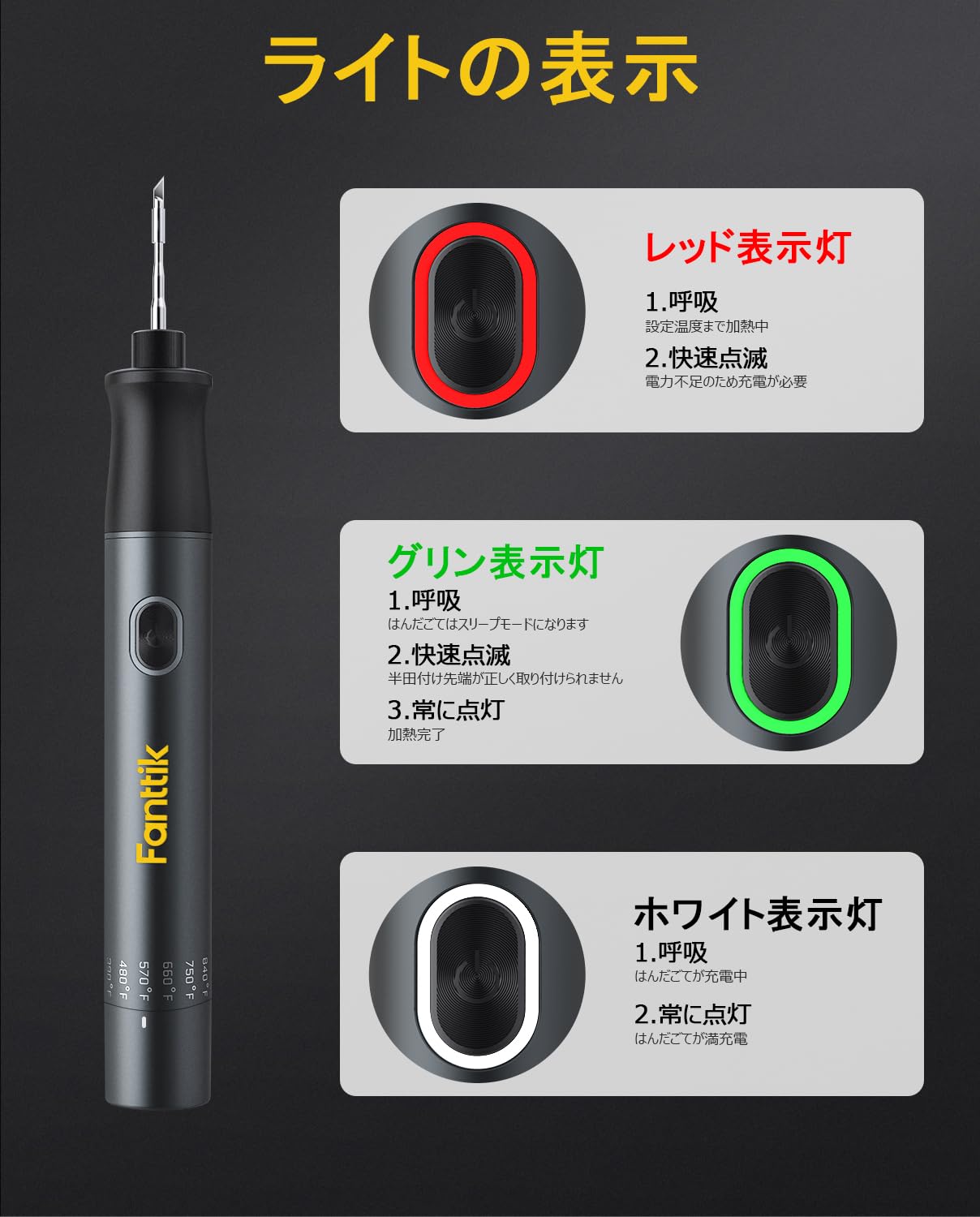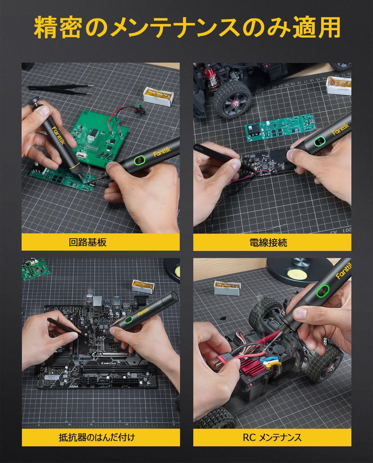 Fanttik T1 Max はんだごて コードレス ハンダゴテ 急速加熱 390°F~840°F(200℃~450℃) スマートスリープ こて先4本(C210) 360°回転こて台 吸い取り器付 精密修理用はんだこてセット