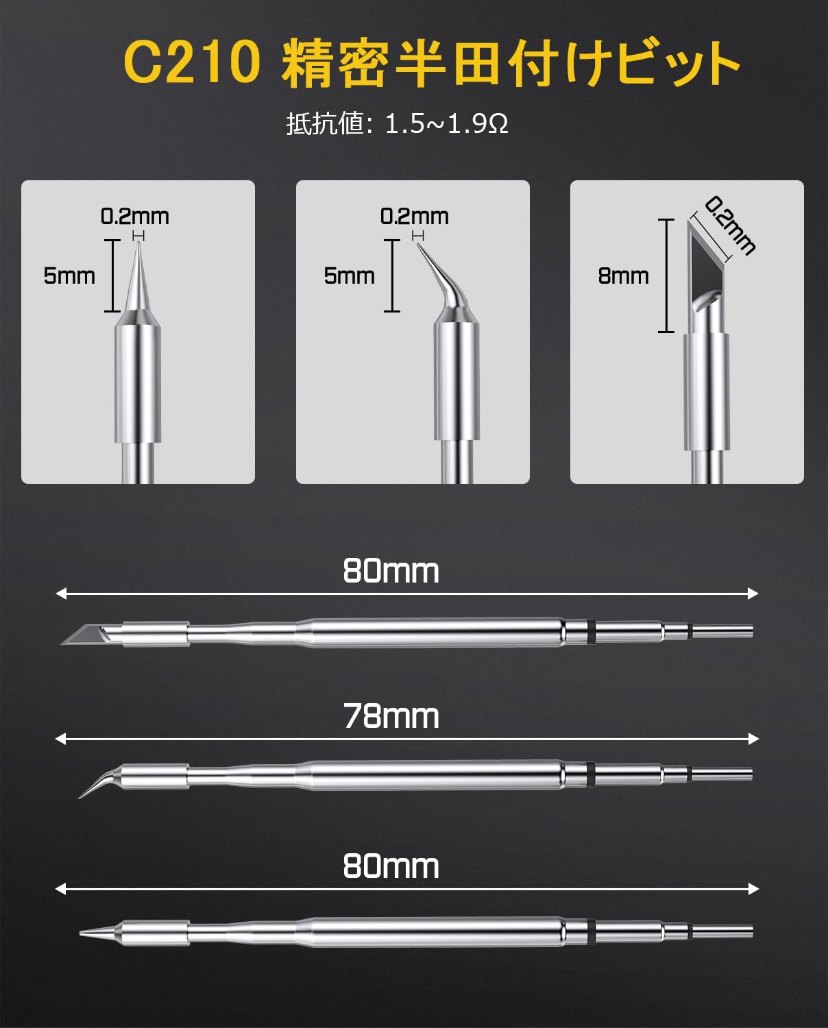 Mutuer はんだごてチップ、7種類ミニステンレス鋼はんだごてチップTS100はんだごての交換(TS-KU)