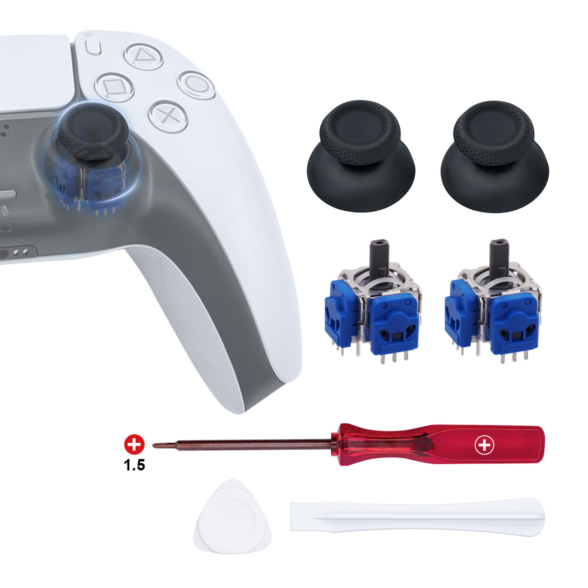 Mcbazel 7 in 1 ホール効果 PS5コントローラー 修理キット アナログジョイスティック ドリフト対策 Hallアナログジョイスティック2個 アナログキャップ2個 コントローラー交換部品 PS5 DSコントローラーのみと互換性があり 修理ドライバー付き-ブルー