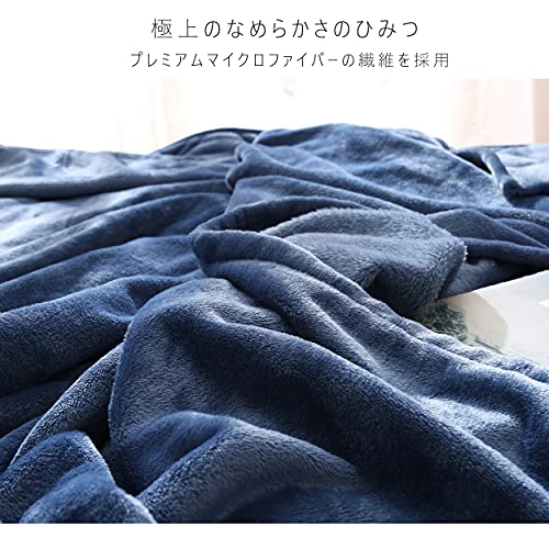 Atokazo あったか毛布 二枚合わせ 掛け毛布 冬用(セミダブル・160X200cm, ネイビー)