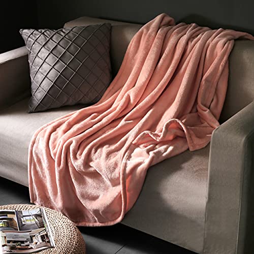 BEDELITE ソファ用フリースブランケット - 300GSM 柔らかく温かいふわふわダスティピンクブランケット、装飾用・贈り物に最適なストライプ柄ブランケット(女性・男性用)(140x200cm)