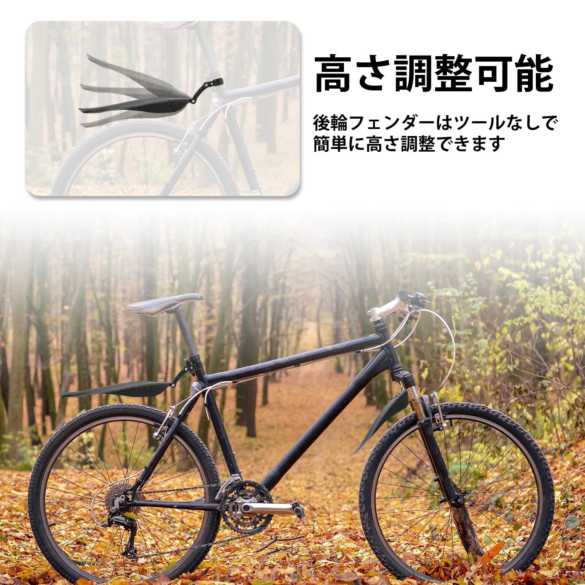 BULLSPANN 自転車 フェンダー マウンテンバイク 工具付き 高さ調整可能 泥除け mtb どろよけ 前後セット