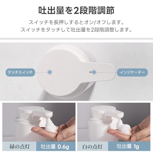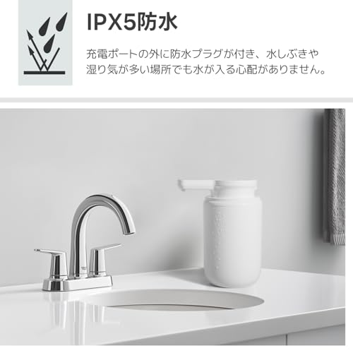 Varluckiner ソープディスペンサー ハンドソープ オートディスペンサー 自動 泡 380ml 吐出量4段階調节 壁掛け 充電式 キッチン 洗面所などに適用 日本語説明書付き