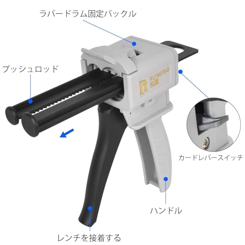 ディスペンサーガン エポキシ樹脂カードリッジ用、50MLディスペンシングガンキットABエポキシ接着剤ガン混合ユニバーサル1:1/2:1接着剤塗布ハンドルツール印象ヒロワールドトレード 用 ディスペンサーガン