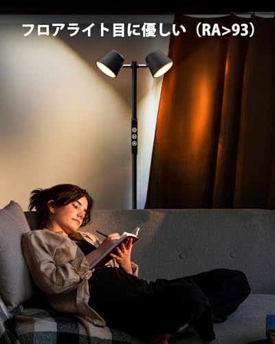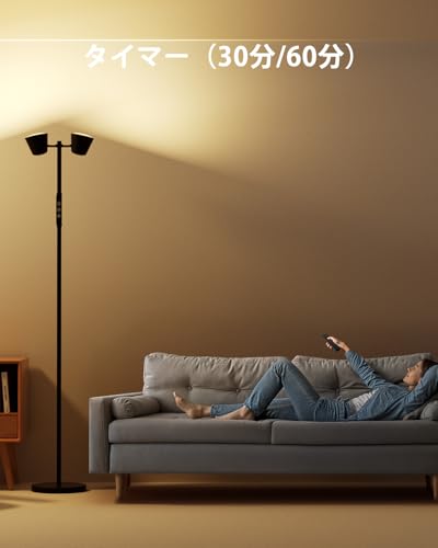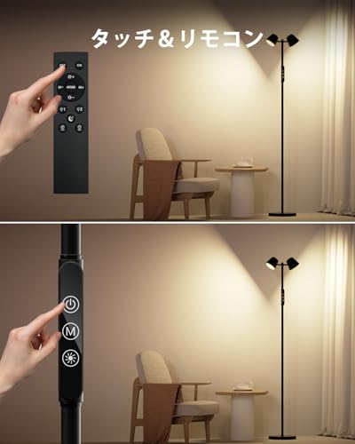 CHTOUSK フロアライト 間接照明 おしゃれ スタンドライト|リモコン付き タイマー&調光機能 省エネLED|寝室・リビング対応 モダンインテリア照明 2灯独立制御 高演色(Ra≥93) ブラック