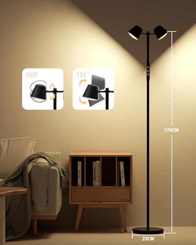 Huakey Home フロアライト 北欧 LED フロアスタンド 間接照明12W スタンドライト 無段階調光調色 フロアランプ led 高さ調節可能な読書スタンド インテリア 照明 寝室/リビング/玄関/ベッドサイド おしゃれ ルームライト 眩しくない&目に優しい リモコン付 ブラック