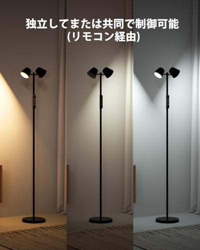 BeaNet フロアライト LED 【無線リモコン・ダブル光源・独立制御】 RGB 変色 音楽同期 フロアランプ 4段階調光調色 スタンドライト 【15W・PSE認証済】 読書/勉強/仕事/プレー、寝室/リビング/書斎/オフィス向き、ブラック BNT-FLL02