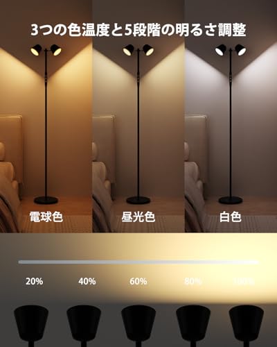 フロアランプ Zanflare フロアライト 無階段調光調色 リモコン付き LEDランプ メモリ機能 タッチセンサー タイマー機能付き ナイトライト 360°調節可能 フロアスタンドライト 省エネ スタンドライト照明 勉強/仕事/読書/リビング/寝室/作業 ベッドサイドライト