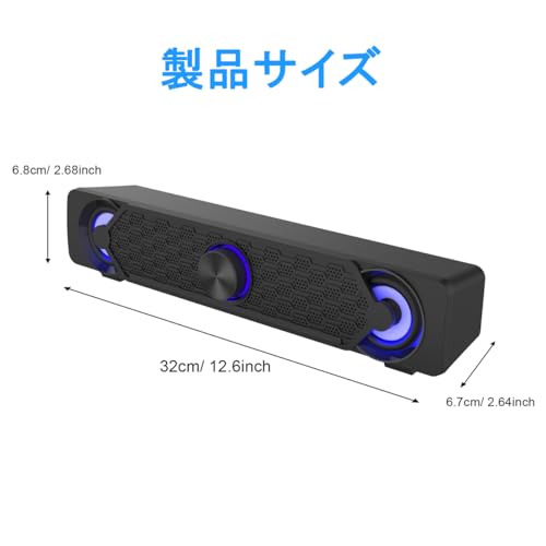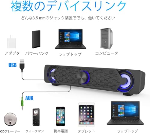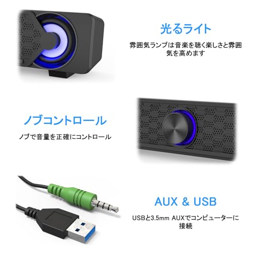 PCスピーカー コンピュータースピーカー ミニLEDサウンドバー クールデザイン モニターゲーム/ノートパソコン/デスクトップノートブックに