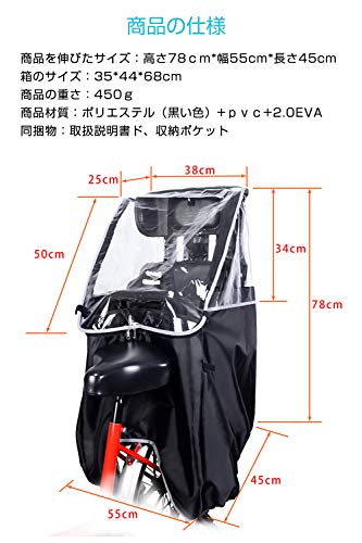 Bilibala 自転車 レインカバー 子供乗せ自転車 チャイルドシートレインカバー 後ろ 撥水加工 雨除け 寒さ対策 風防 前開ける 自転車 レインカバー 後