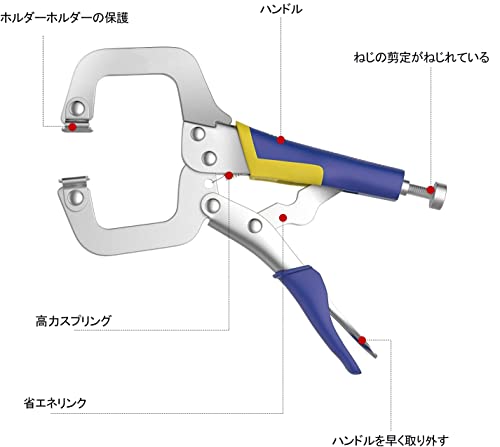 TOLESA ロッキングプライヤー 7.6cm最大口開き cクランプ 木工 プレミアムフェイスクランプ 固定工具 強固ロック ニッケルメッキ 調節可能 DIY木工