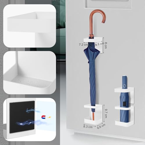 マグネット傘立て ブラック スリム おしゃれ 水受けトレイ付き 多機能傘収納 玄関ドア壁掛け コンパクト 傘立て 玄関扉収納 (ホワイト)