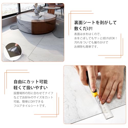 CELAVY フロアタイル 大理石調 フローリングシート 置くだけ 接着剤不要 フロア シール 45.7cm×45.7cm 厚手1.5mm 貼るだけ フロアタイル キズ防止 模様替え 玄関 賃貸 キッチン トイレ 防水 リノベーション DIY 土足OK 初心者OK (大理石調S66 約3畳分 24枚入り )