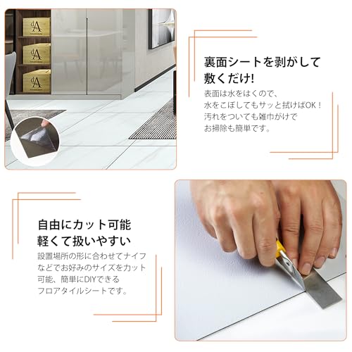 CELAVY フロアタイル 接着剤不要 大理石調 フローリングシート 置くだけ フロア シール 貼るだけ 大理石フロアタイル 54枚入り 約3畳 厚手1.5mm キズ防止 模様替え 玄関 賃貸 キッチン トイレ 防水 リノベーション DIY 土足OK 初心者OK(54枚入り 約3畳分 大理石調S55)