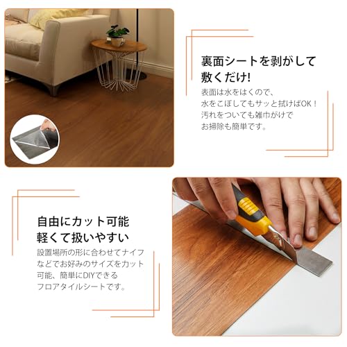 CELAVY フロアタイル 接着剤不要 木目調 フローリングシート 置くだけ フロア シール 貼るだけ 木目フロアタイル 36枚入り 約3畳 厚手1.5mm キズ防止 模様替え 玄関 賃貸 キッチン トイレ 防水 リノベーション DIY 土足OK 初心者OK(36枚入り 約3畳分 木目調W42)