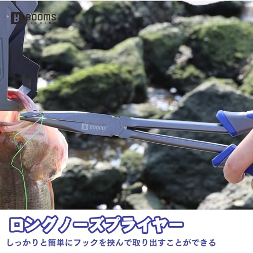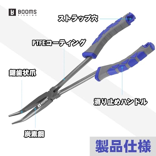 Booms Fishing XW11 ロングノーズプライヤー ラジオペンチ 極細 海釣専用 針はずし 先端カーブ 全長28cm 落下防止ストラップ付き