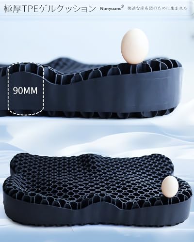 【極上の座り心地】2025自社独発 ゲルクッション 90mm極厚 無重力 クッション 座布団 ジェルクッション 体圧分散 蒸れない オフィスチェア クッション カー/車椅子/自宅/在宅勤務/テレワーク 洗えるカバー[ブラック 50×41cm]