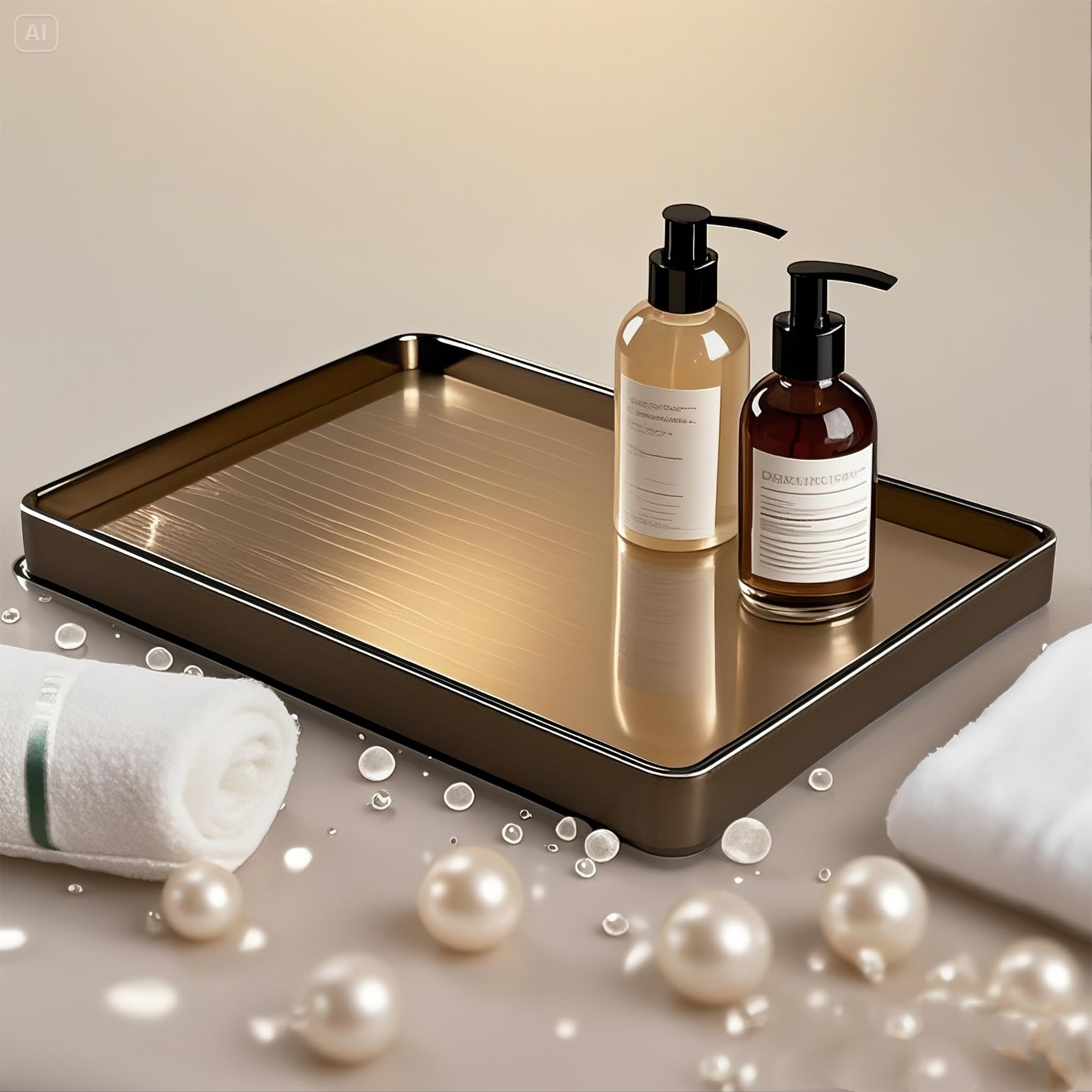 モダンで機能的なアルミニウムトレー: 本製品はシンプルかつモダンなデザインが特徴で、洗練されたインテリア空間に自然に調和します。高品質アルミニウム素材を採用し、頑丈で耐久性に優れているため、コーヒーカップやジュエリー、時計などの小物を滑らず安心してお使いいただけます。 3色展開(ゴールド×グレー、ワインレッド×ゴールド、ブルー×グレー)で、シーンに応じたおしゃれな雰囲気を演出可能。2サイズ展開のため、用途に合わせた最適なサイズとお好みのカラーをお選びいただけます。 キッチンでの朝食サービス、化粧台のアクセサリー整理、リビングのドリンクサービスなど、多彩なシーンでご活用いただけます。洗面所や玄関の小物整理にも最適で、生活空間の機能性を高めます。