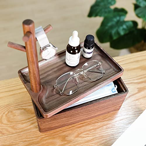 Sakulaya 収納 ボックス 木製 小物収納 木箱 蓋付き 小物入れ ボックス 卓上収納 蓋がトレーになる マスクケース クルミ材